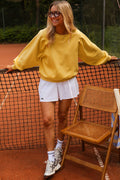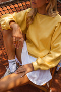 Sale Citrus Pleated Balloon Sleeve Pullover Solid Sweatshirt