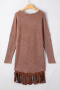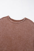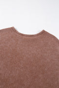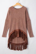 Sale Coffee Waffle Knit Fringed High Low Loose Top