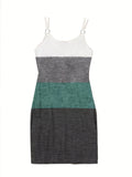 Color Block Coconut Tree Print Cami Dress, Casual Spaghetti Strap Dress