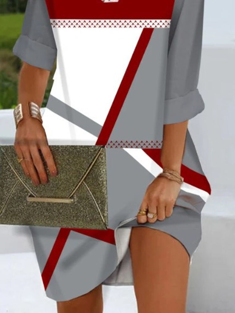 Sale Graphic Print Dress with Long Sleeves and Pockets - Casual and Comfortable