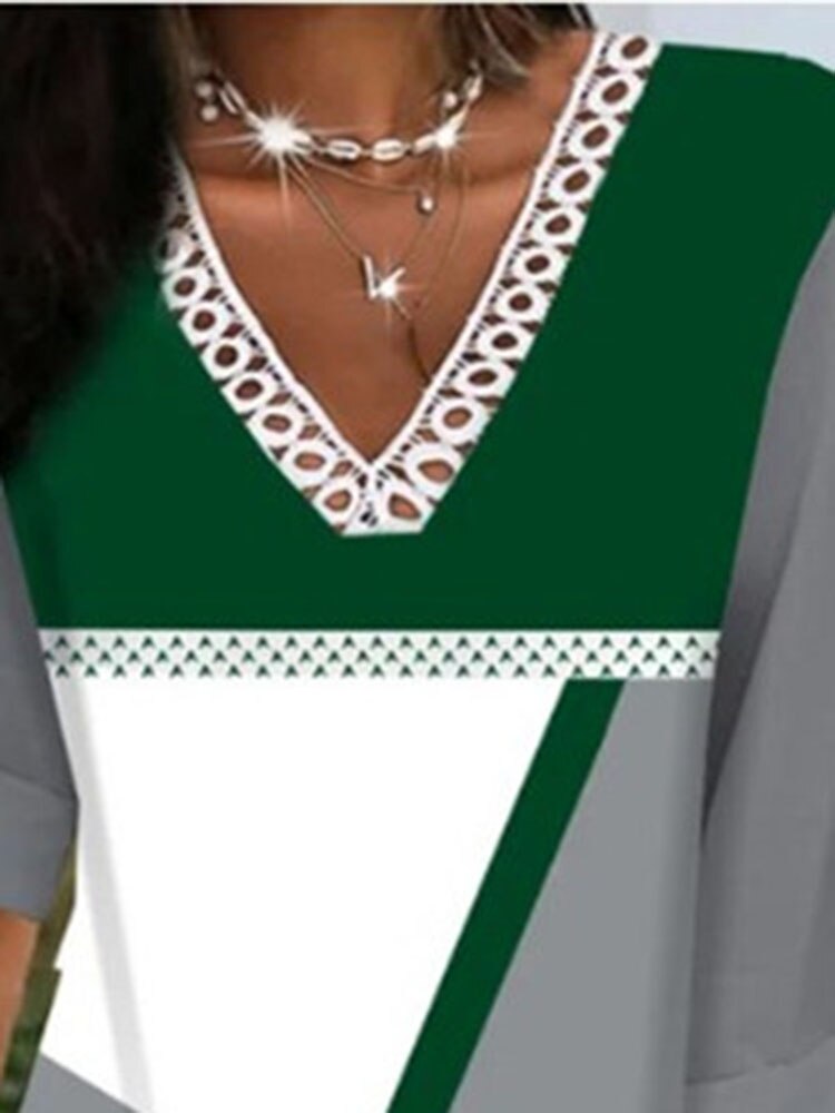 Sale V Neck Long Sleeve Geometric Regular Micro-Elasticity Regular Fit Blouse