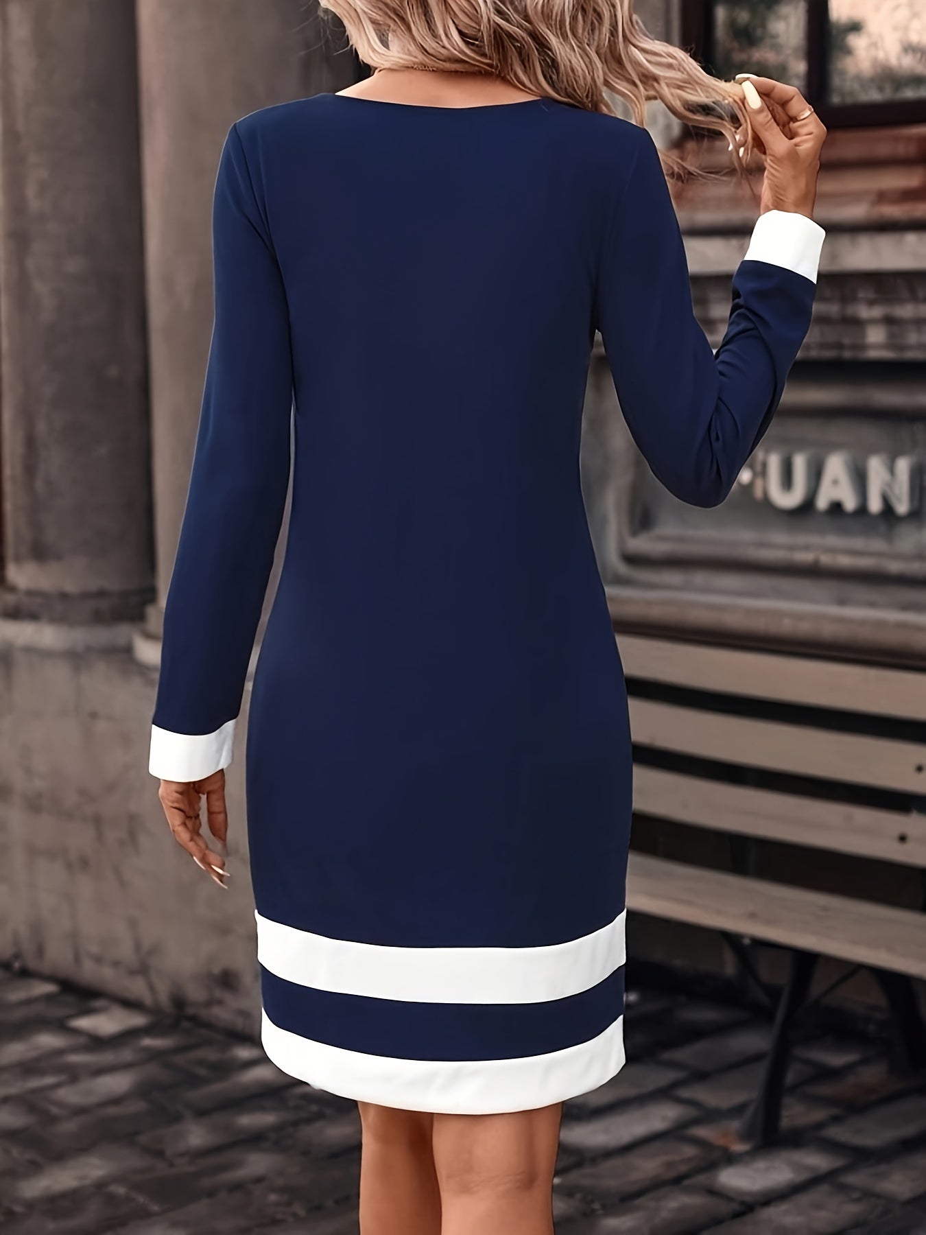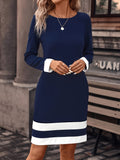 Color Block Crew Neck Midi Dress - Stylish & Versatile with Long Sleeves