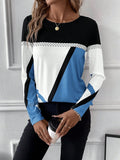 Sale Color Block Crew Neck T-shirt, Casual Long Sleeve Top