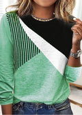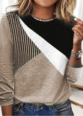 Color Block Striped Printed Long Sleeve Round Neck Casual T-Shirt