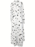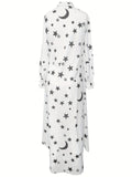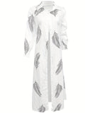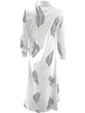 Sale Solid Color Single Breasted Simple Dress, Elegant Long Sleeve Maxi Loose Dress