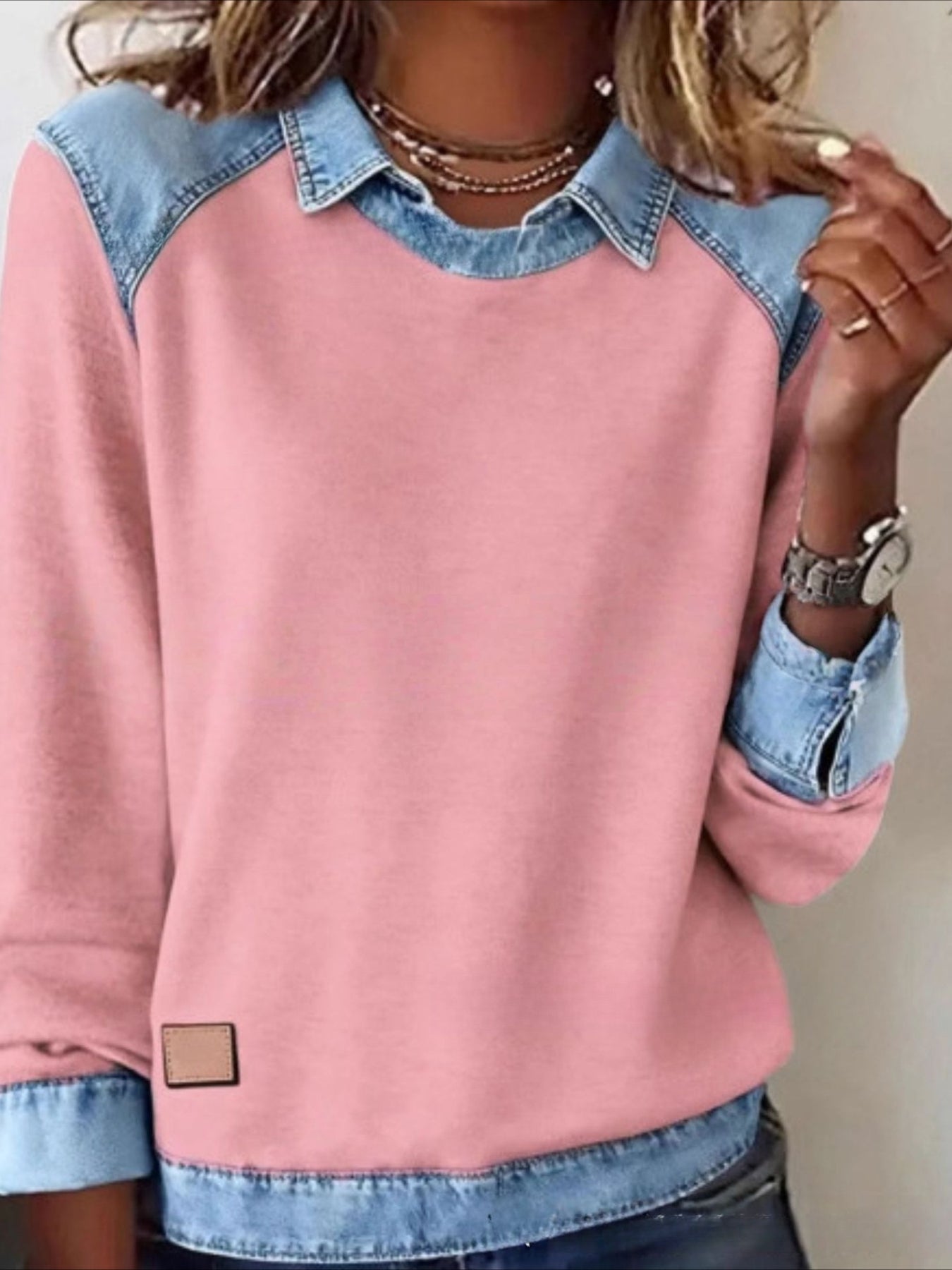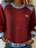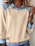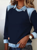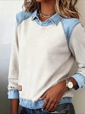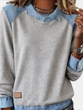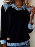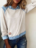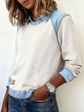 Sale Casual Contrast Lace Round Neck Long Sleeve T-Shirt