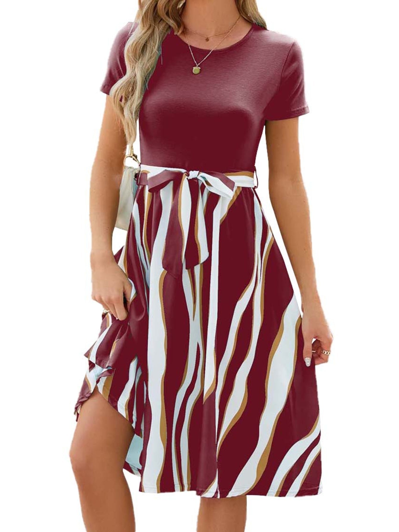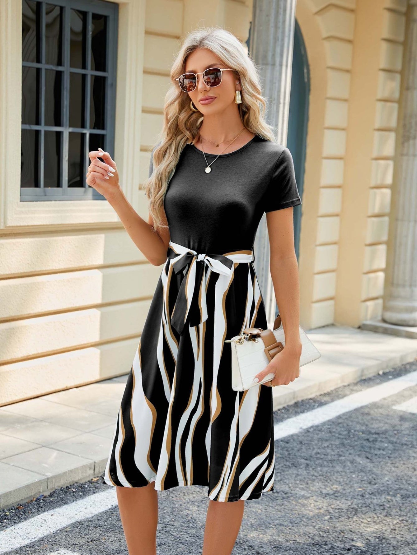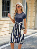 Sale V Neck Short Sleeves Print Casual Midi Dress