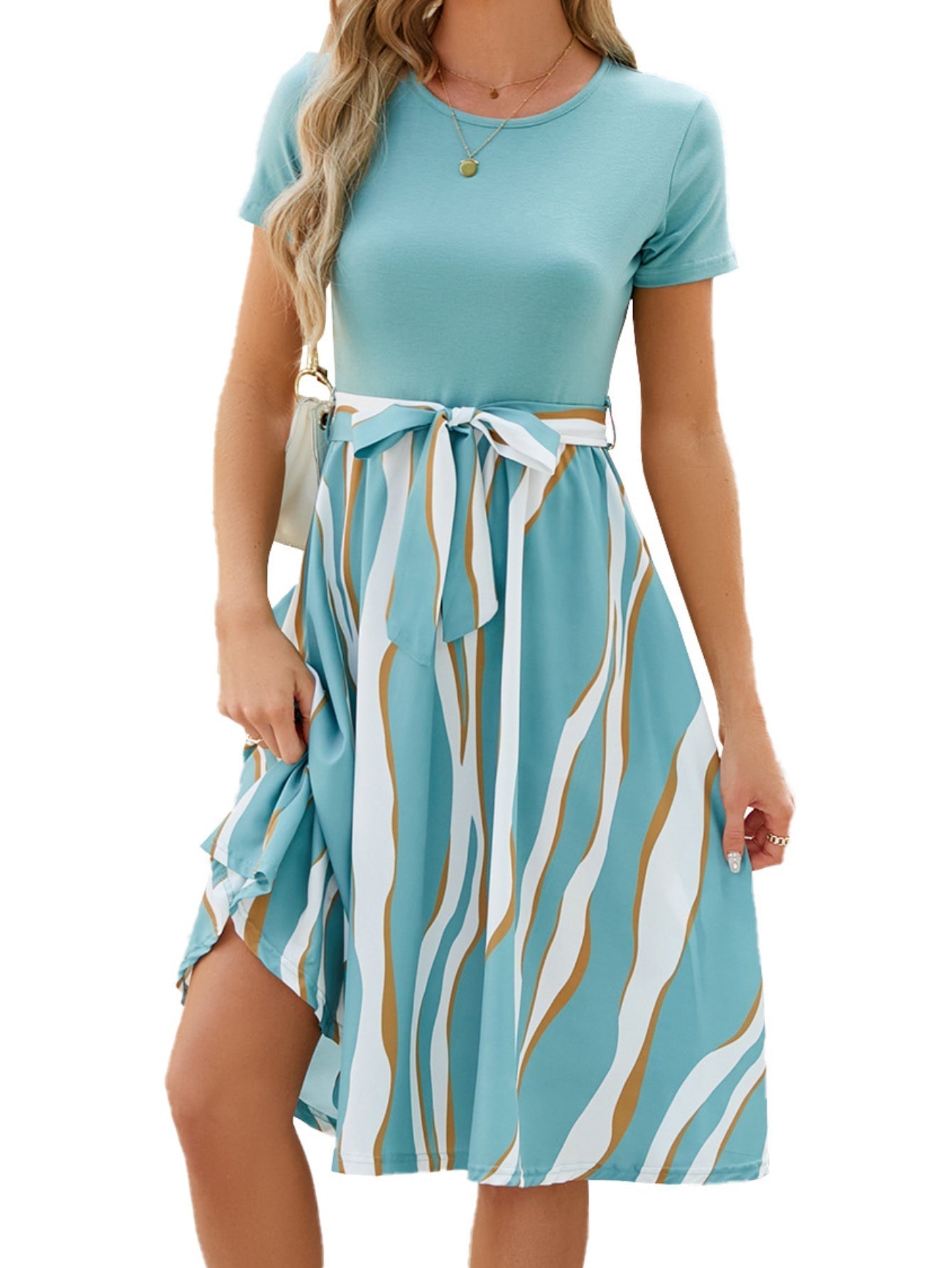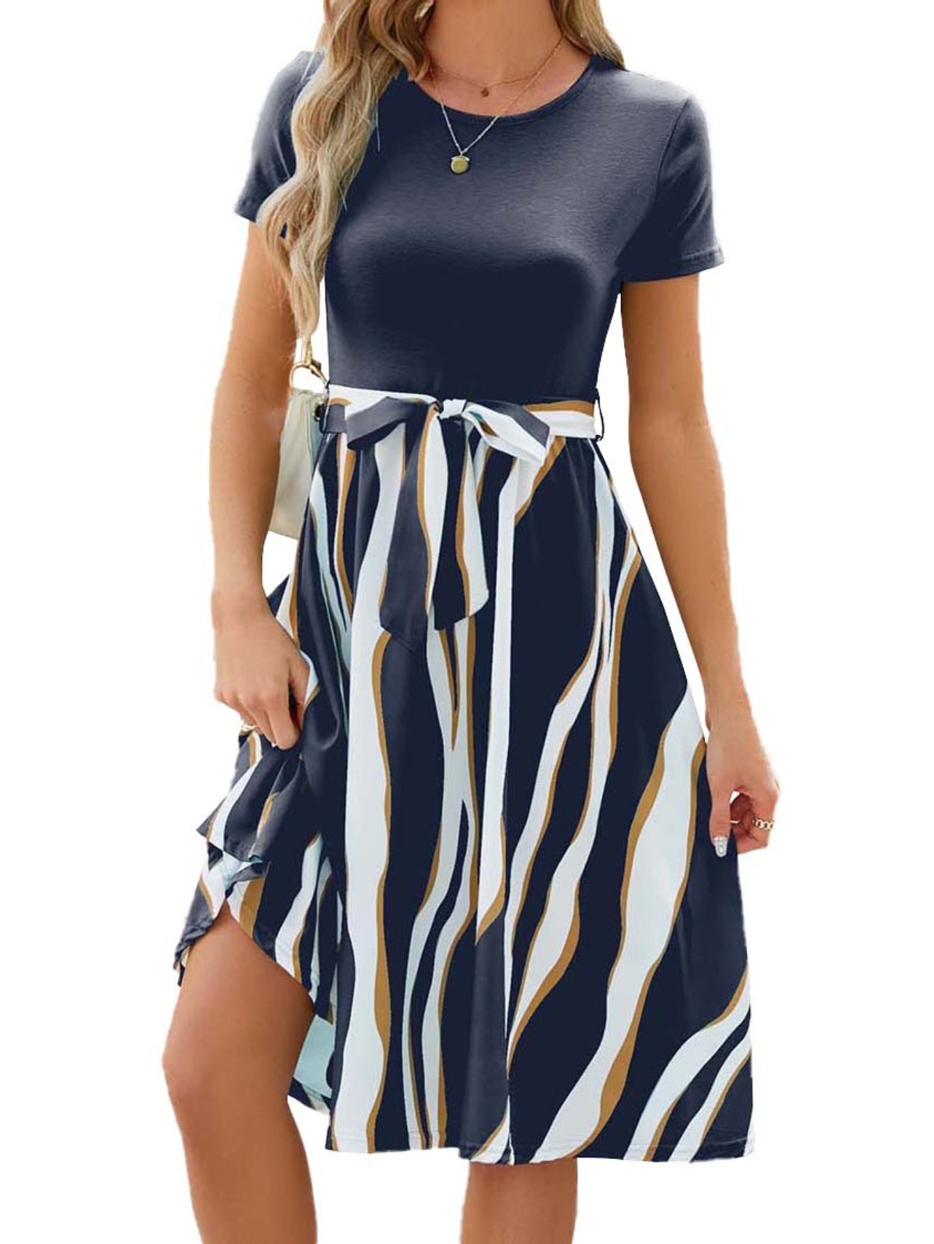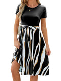 Sale Elegant Floral Print Knee-Length Short Sleeve Round Neck A-Line Dress