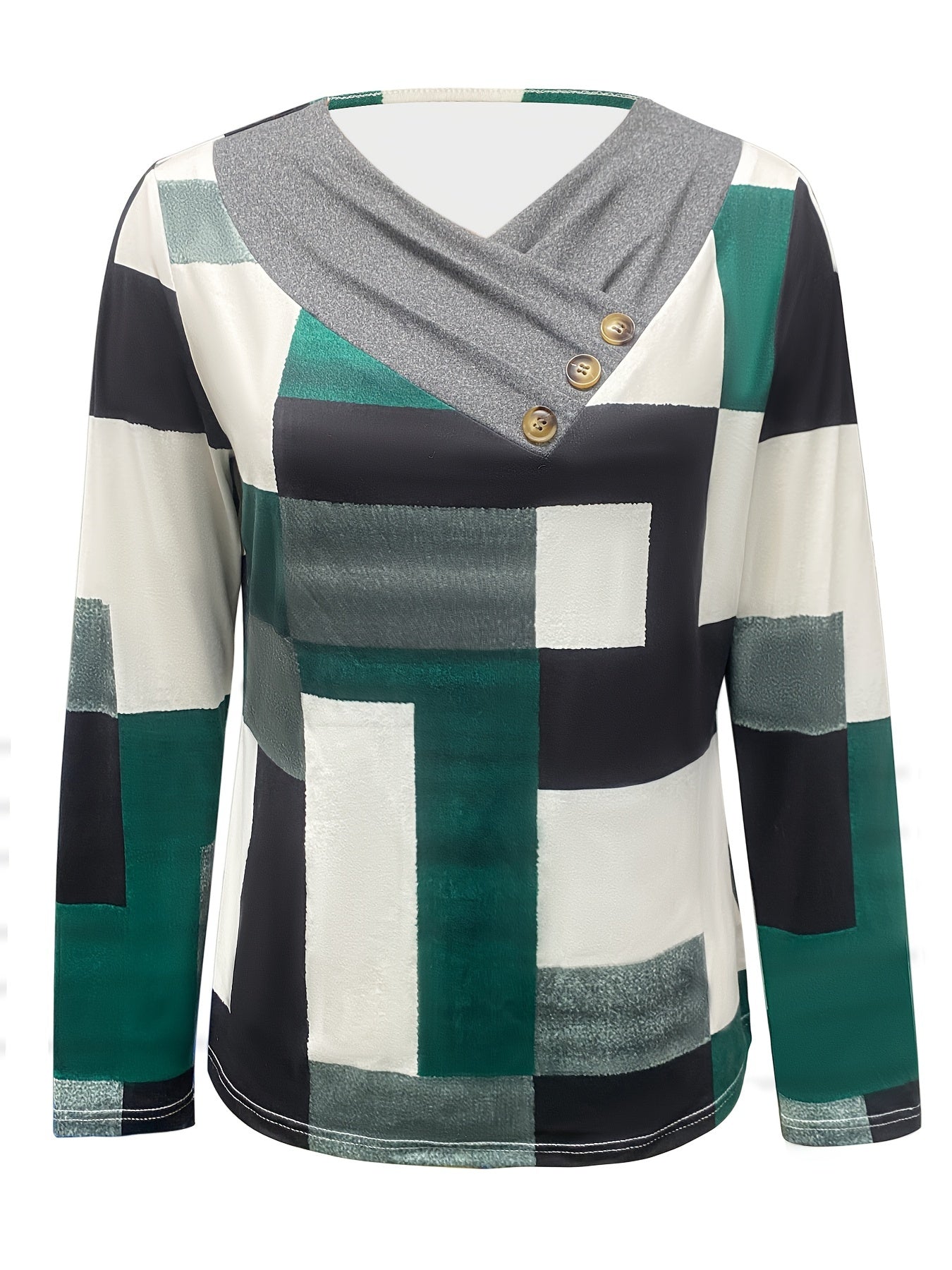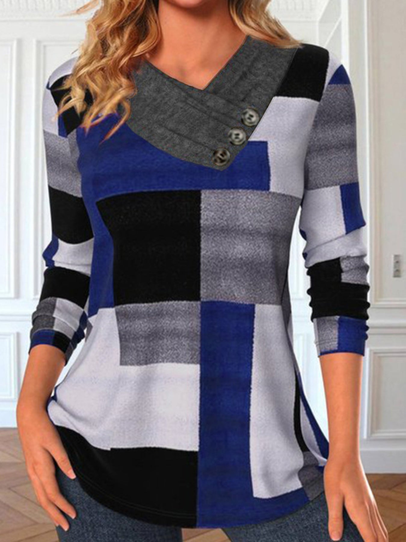 Sale V Neck Long Sleeve Geometric Regular Micro-Elasticity Regular Fit Blouse