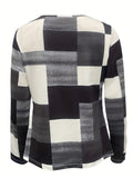Sale Color Block Crew Neck T-shirt, Casual Long Sleeve Top