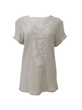 Sale Contrast Lace Crew Neck T-Shirt, Casual Short Sleeve T-Shirt