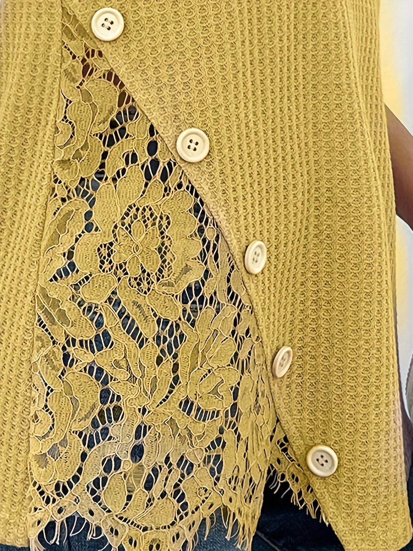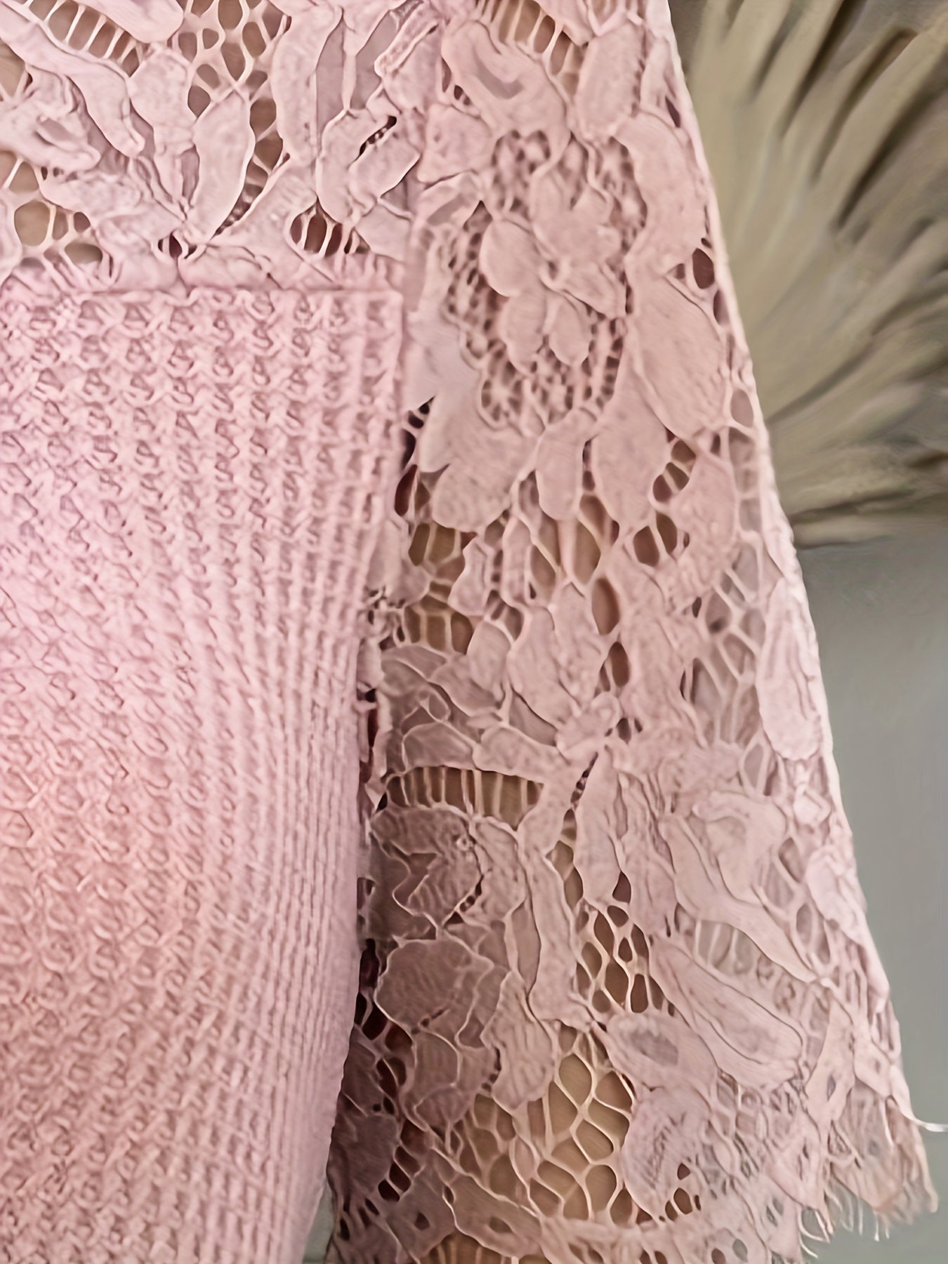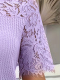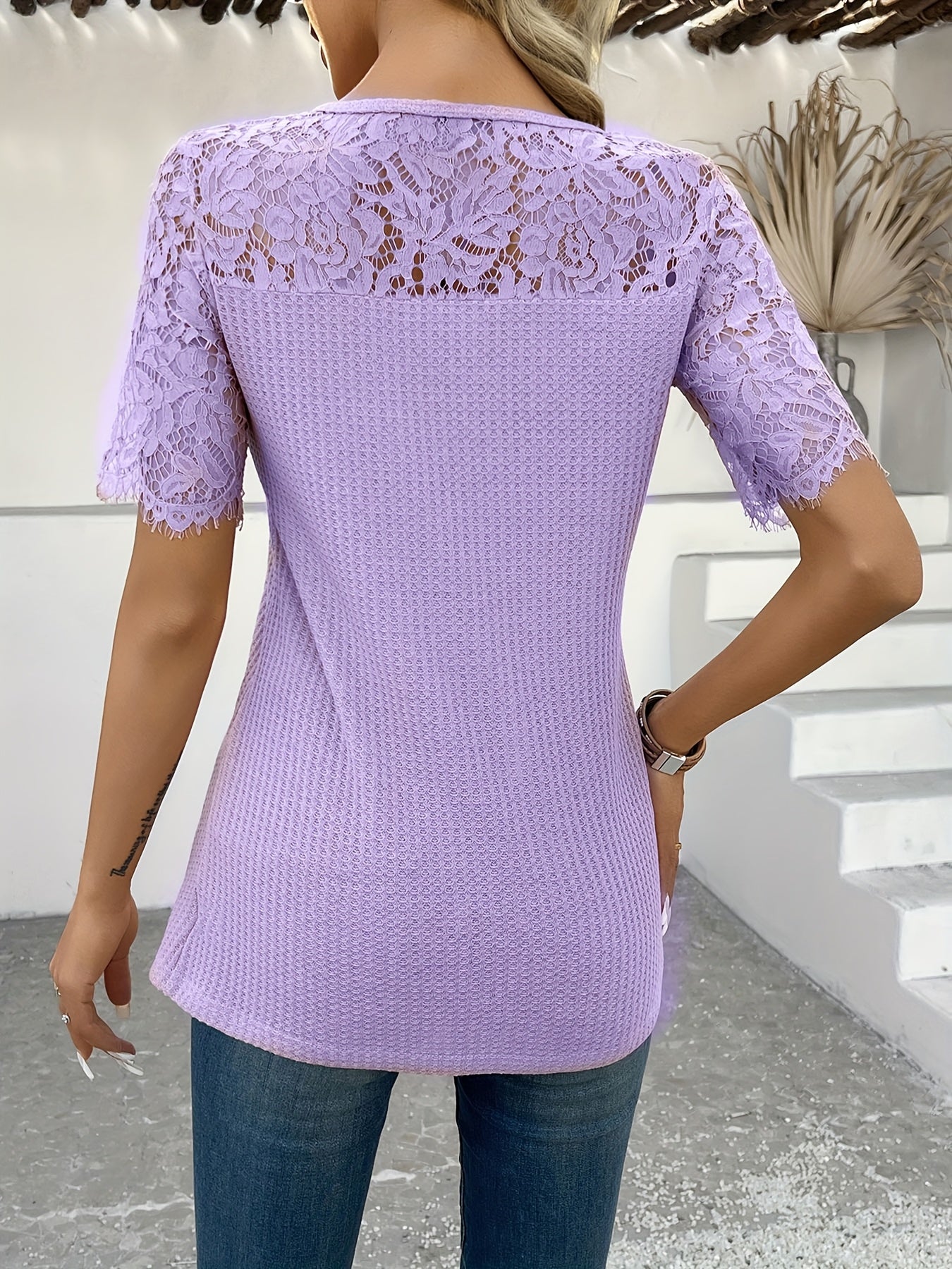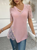 Contrast Lace Embroidery Solid Color Short Sleeve Elegant Casual Beach Vacation T-Shirt