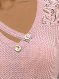 Sale Casual Contrast Lace Round Neck Long Sleeve T-Shirt