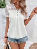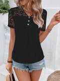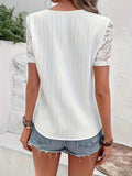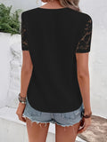 Contrast Lace V Neck T-shirt, Casual Short Sleeve Top