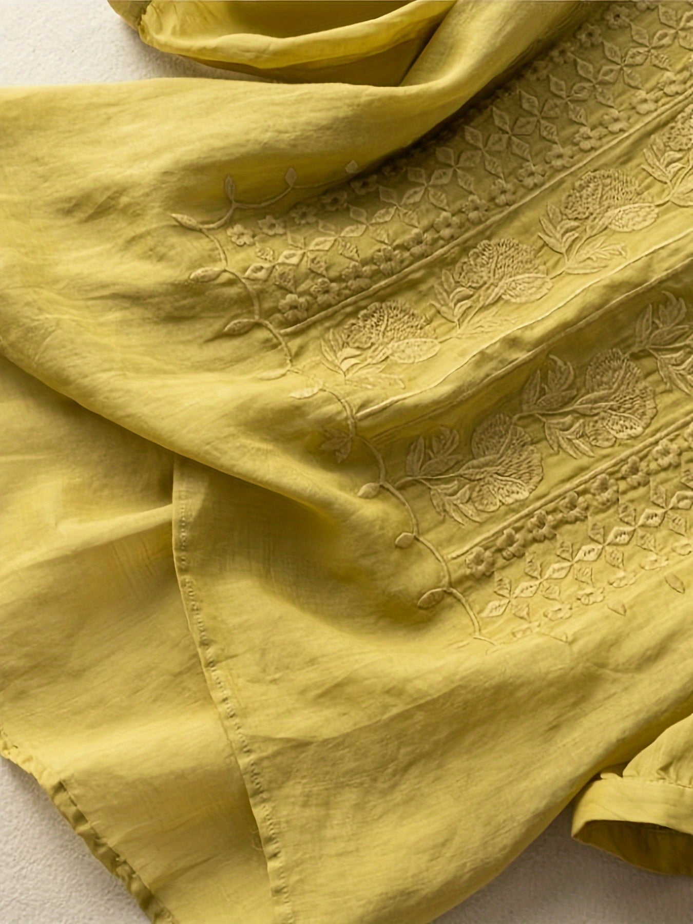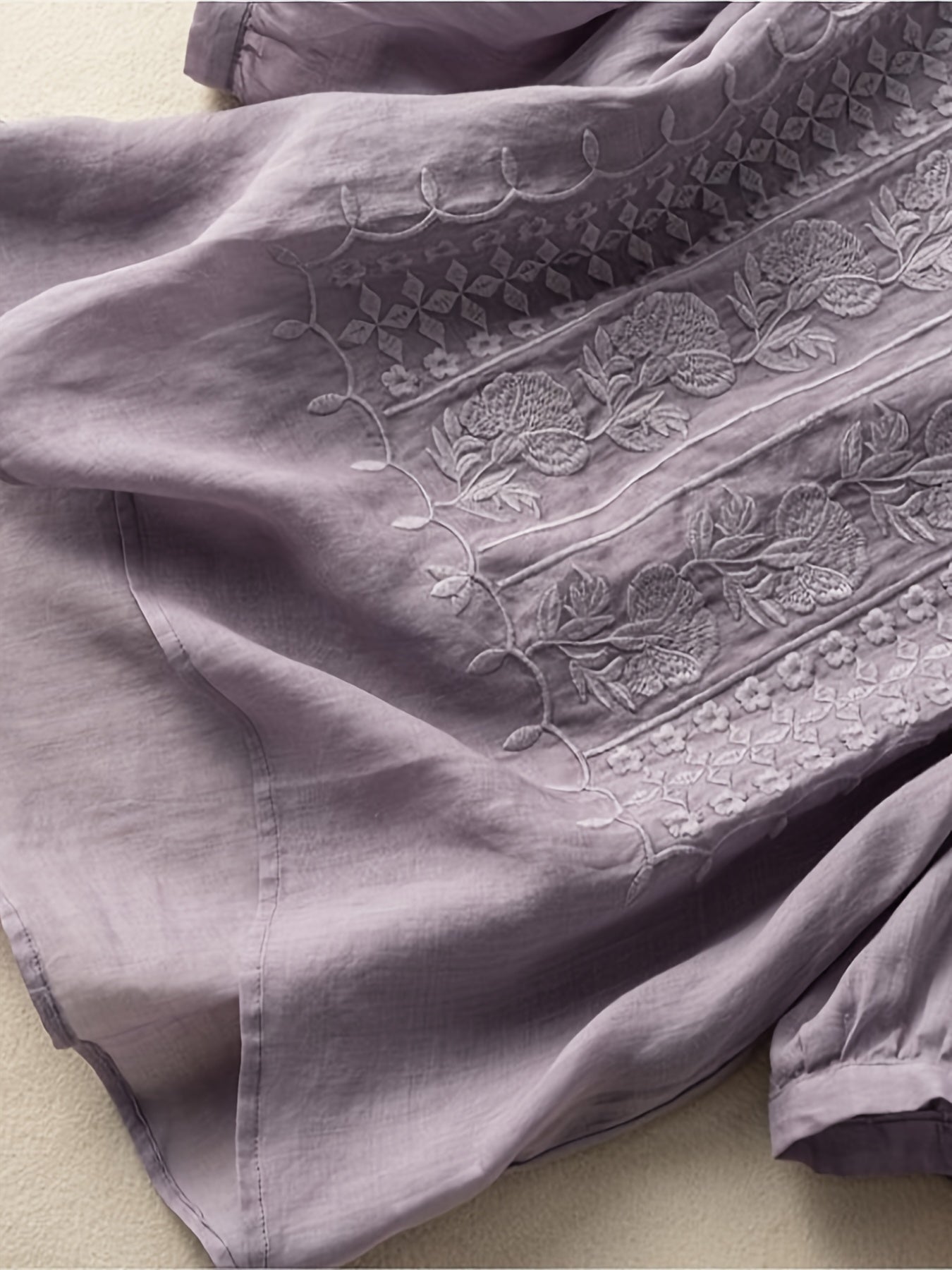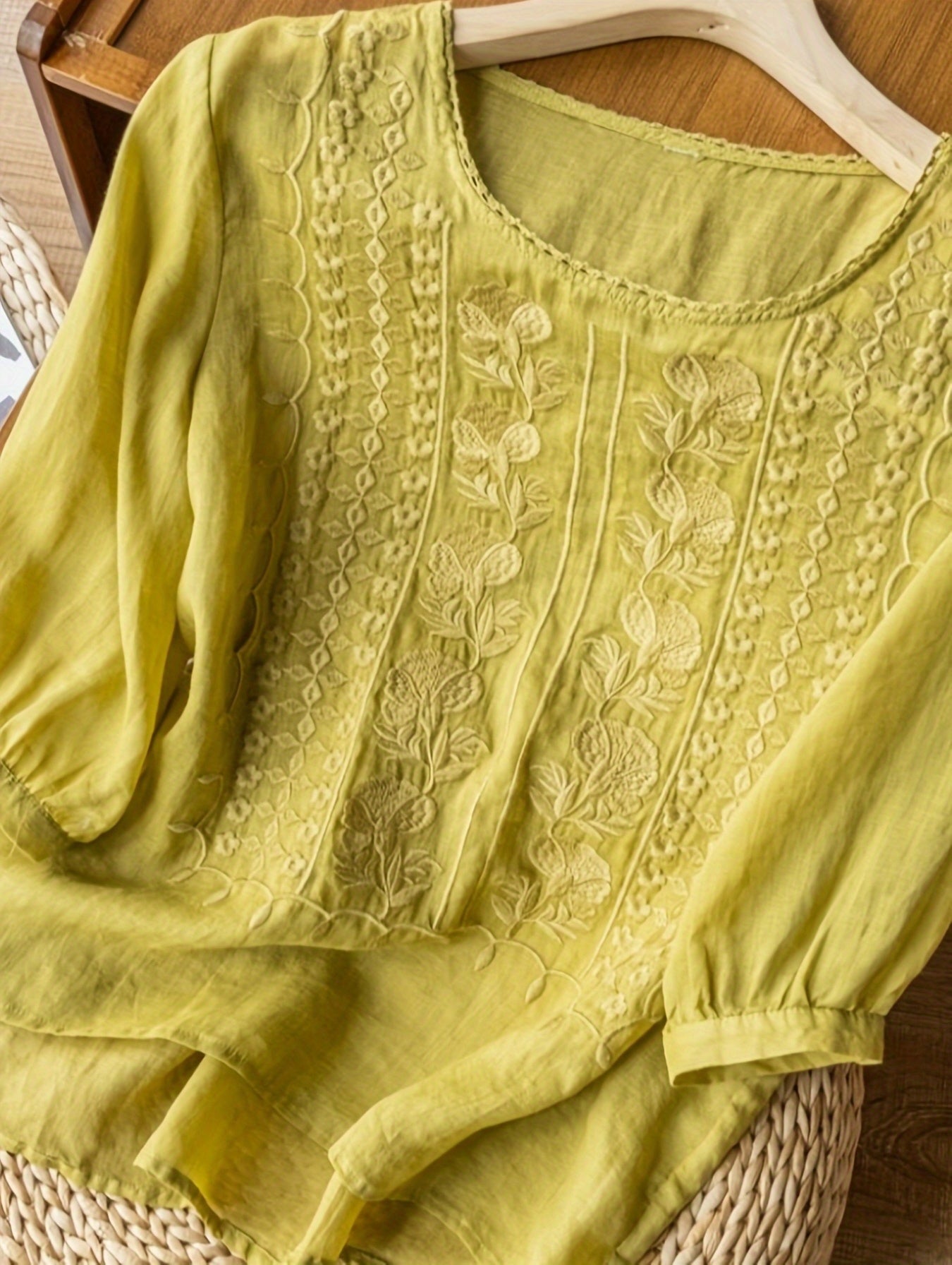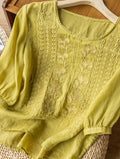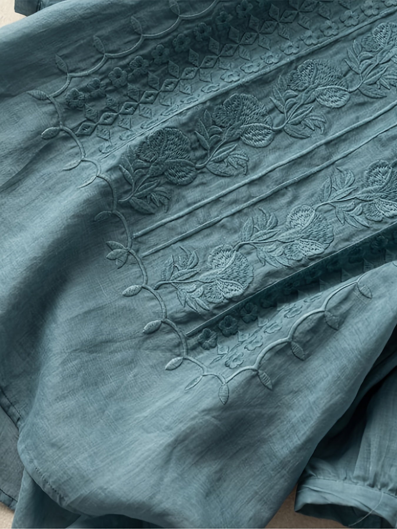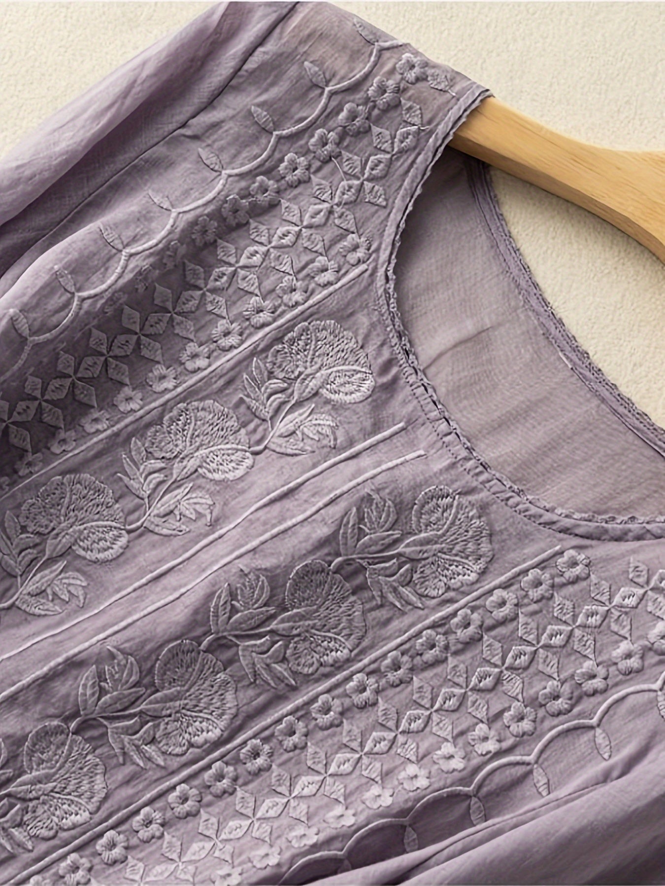 Cotton and Linen Embroidered T-Shirt in Various Colors And Sizes