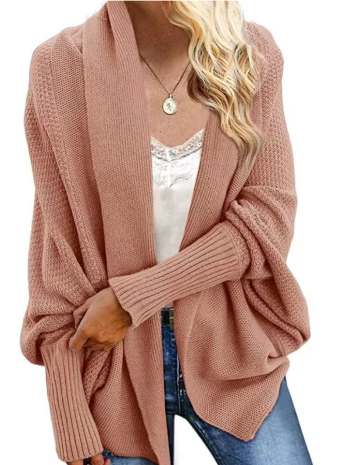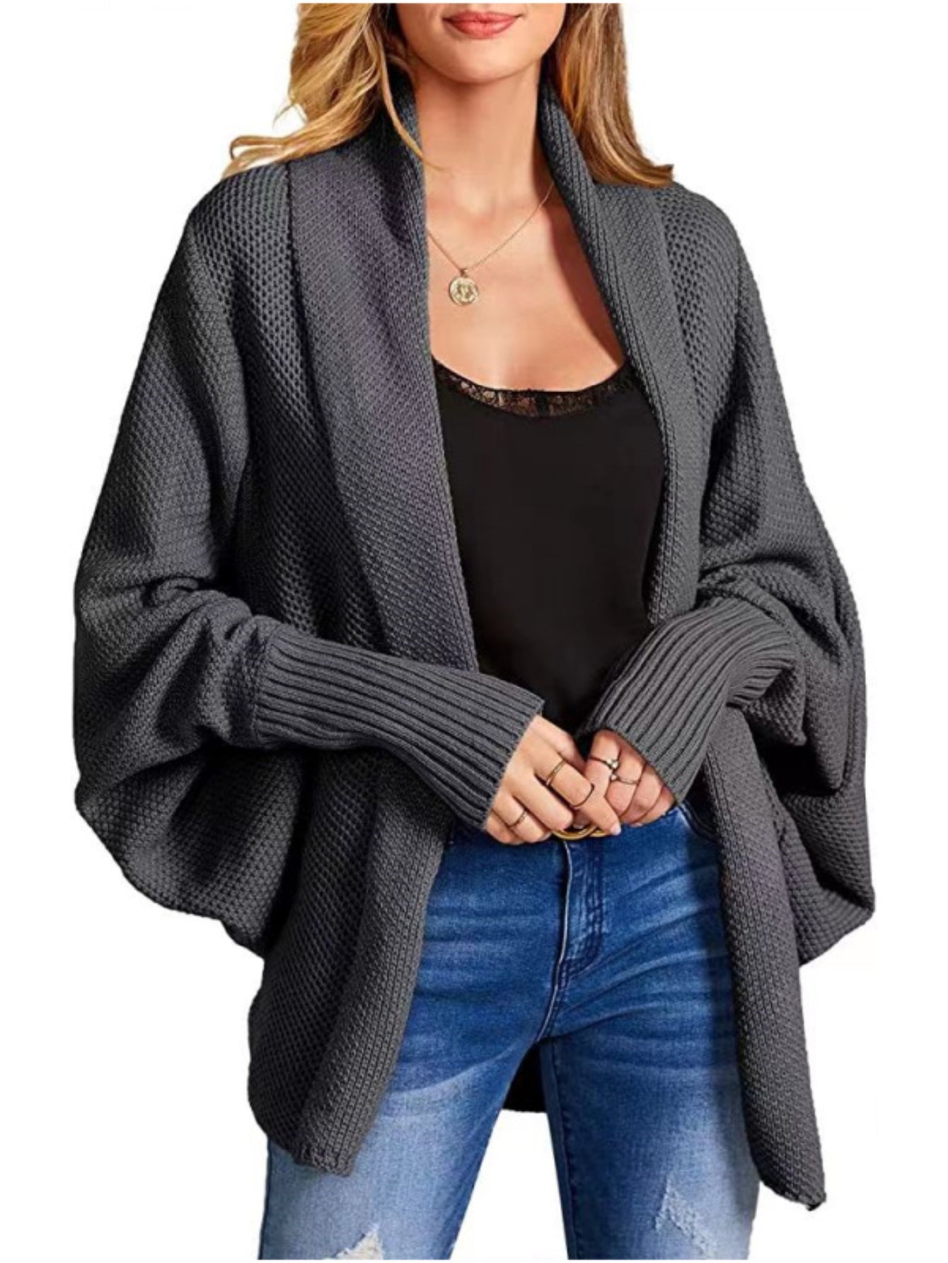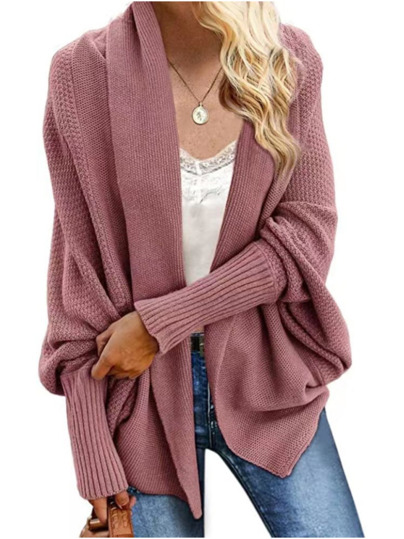 Sale Cozy Solid Color Batwing Sleeve Cardigan - Women's Elegant Knitted Cardigan