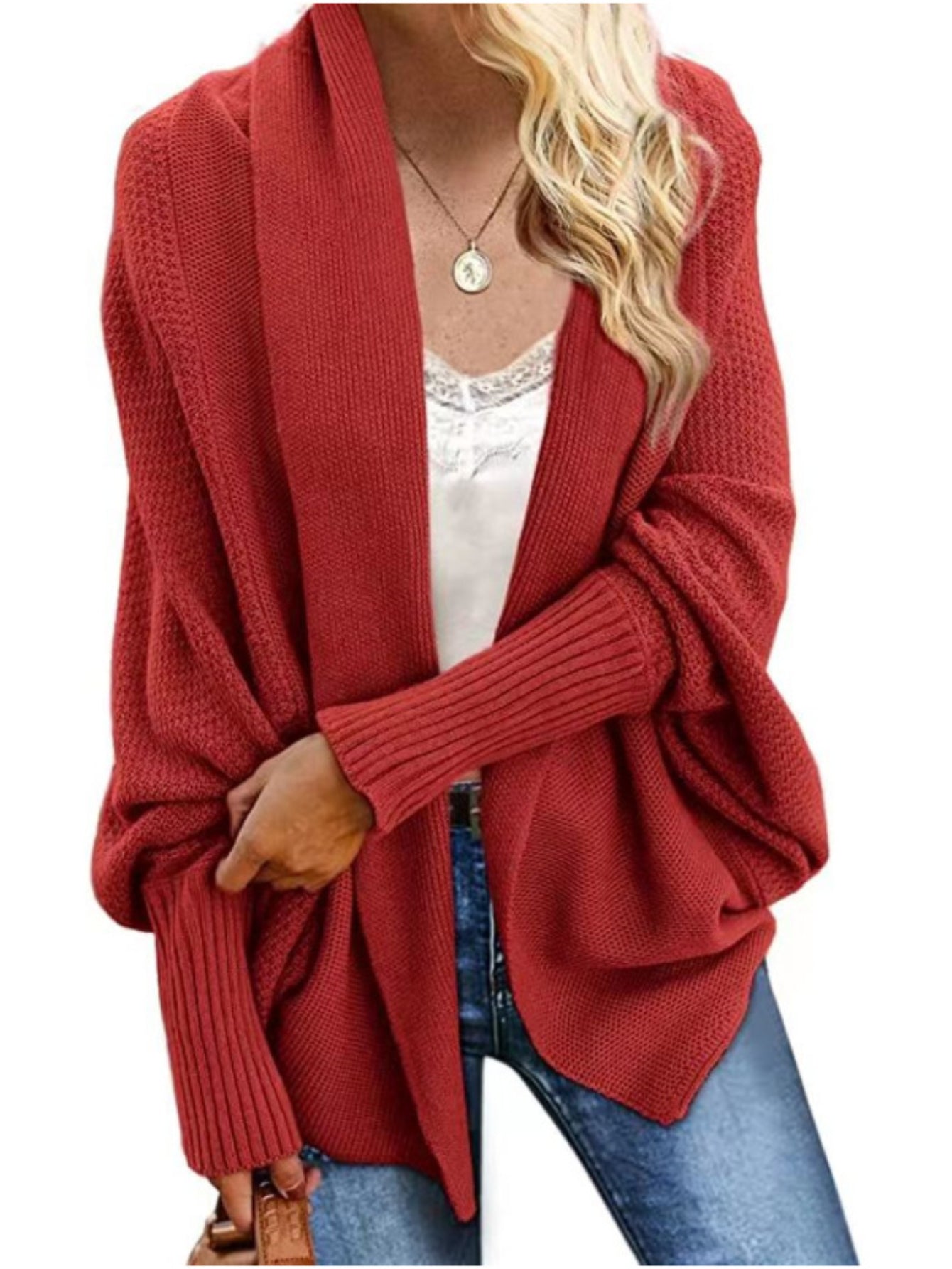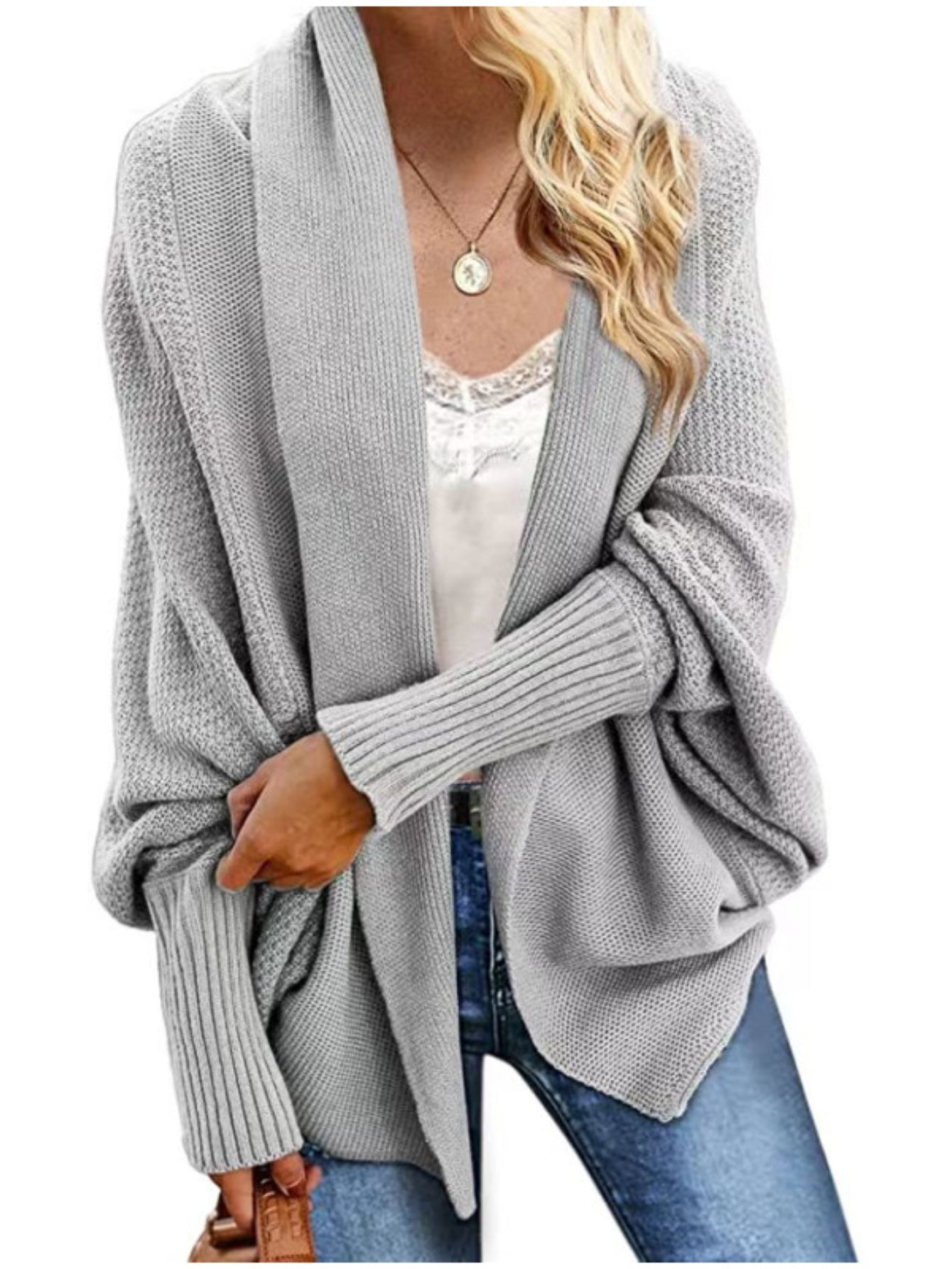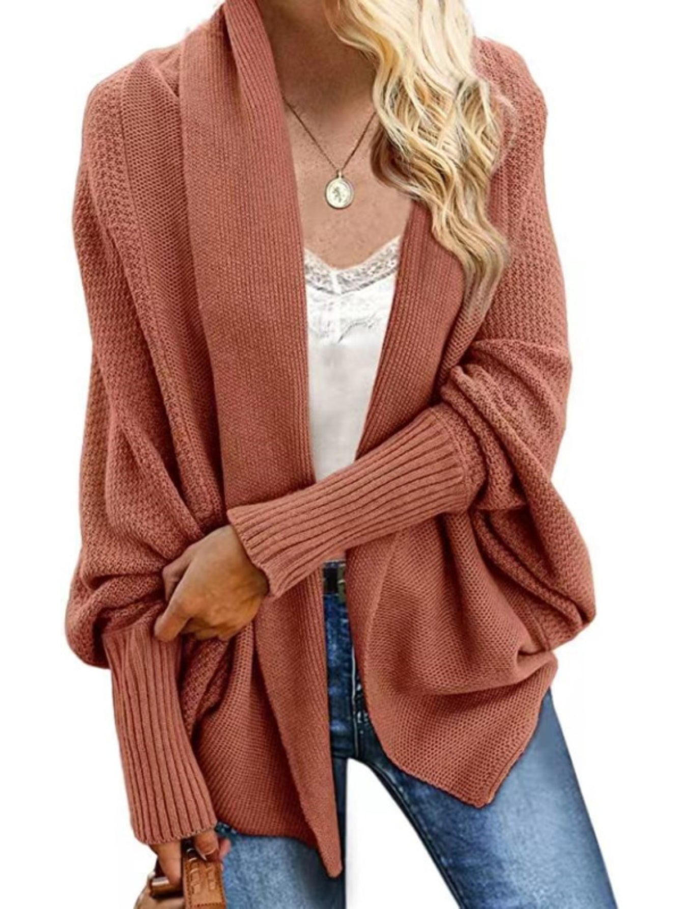 Sale Cozy Solid Color Batwing Sleeve Cardigan - Women's Elegant Knitted Cardigan