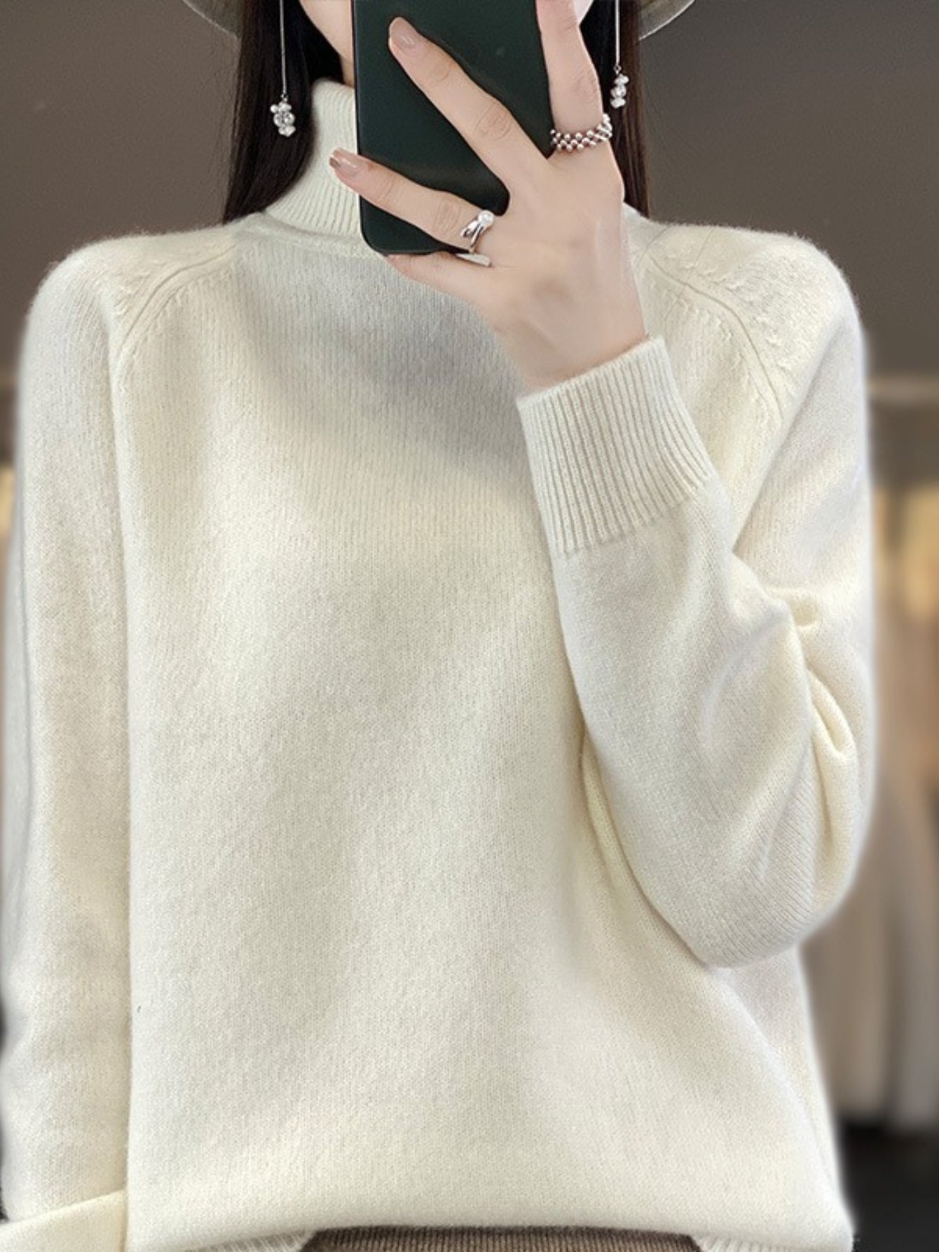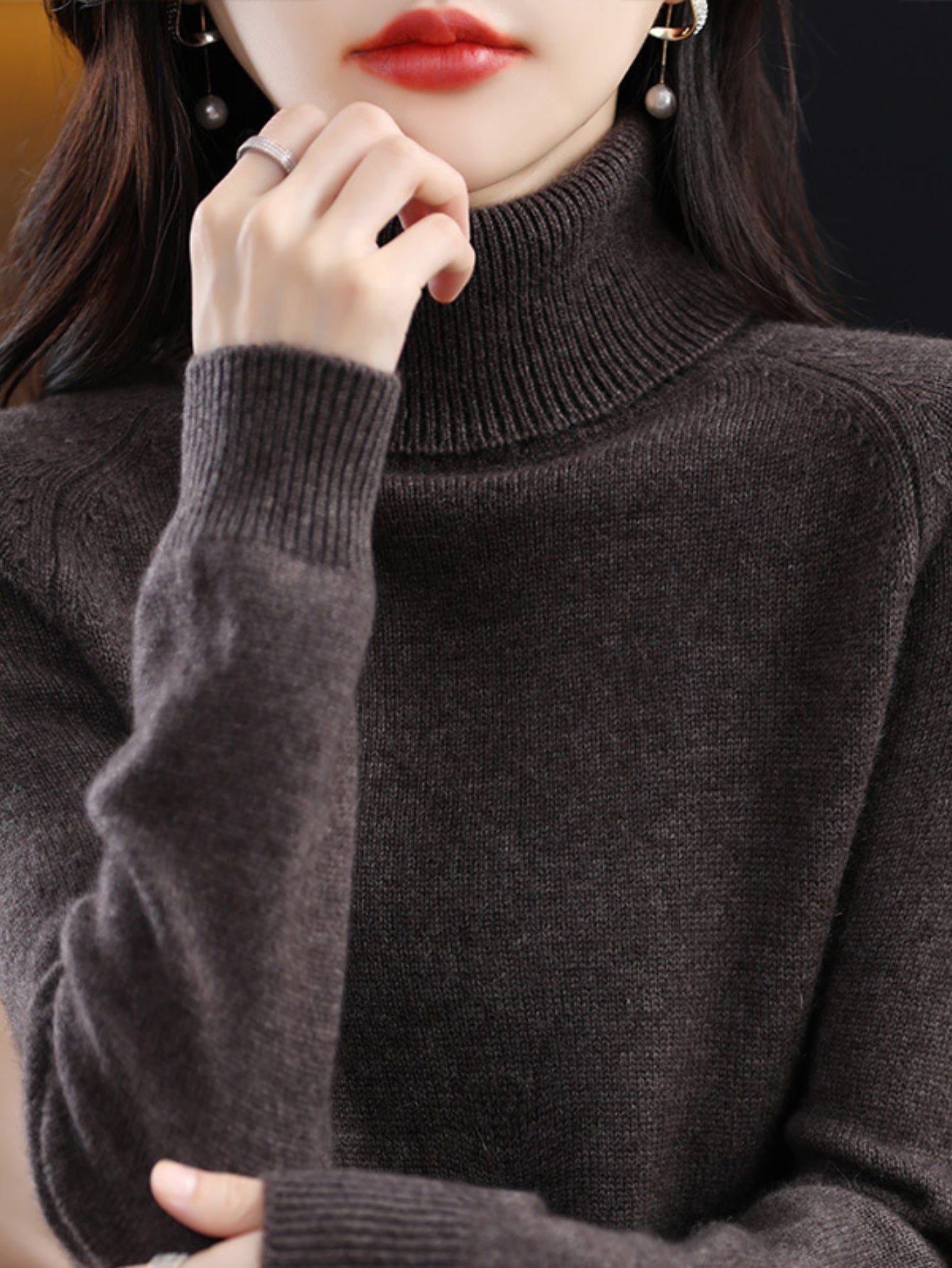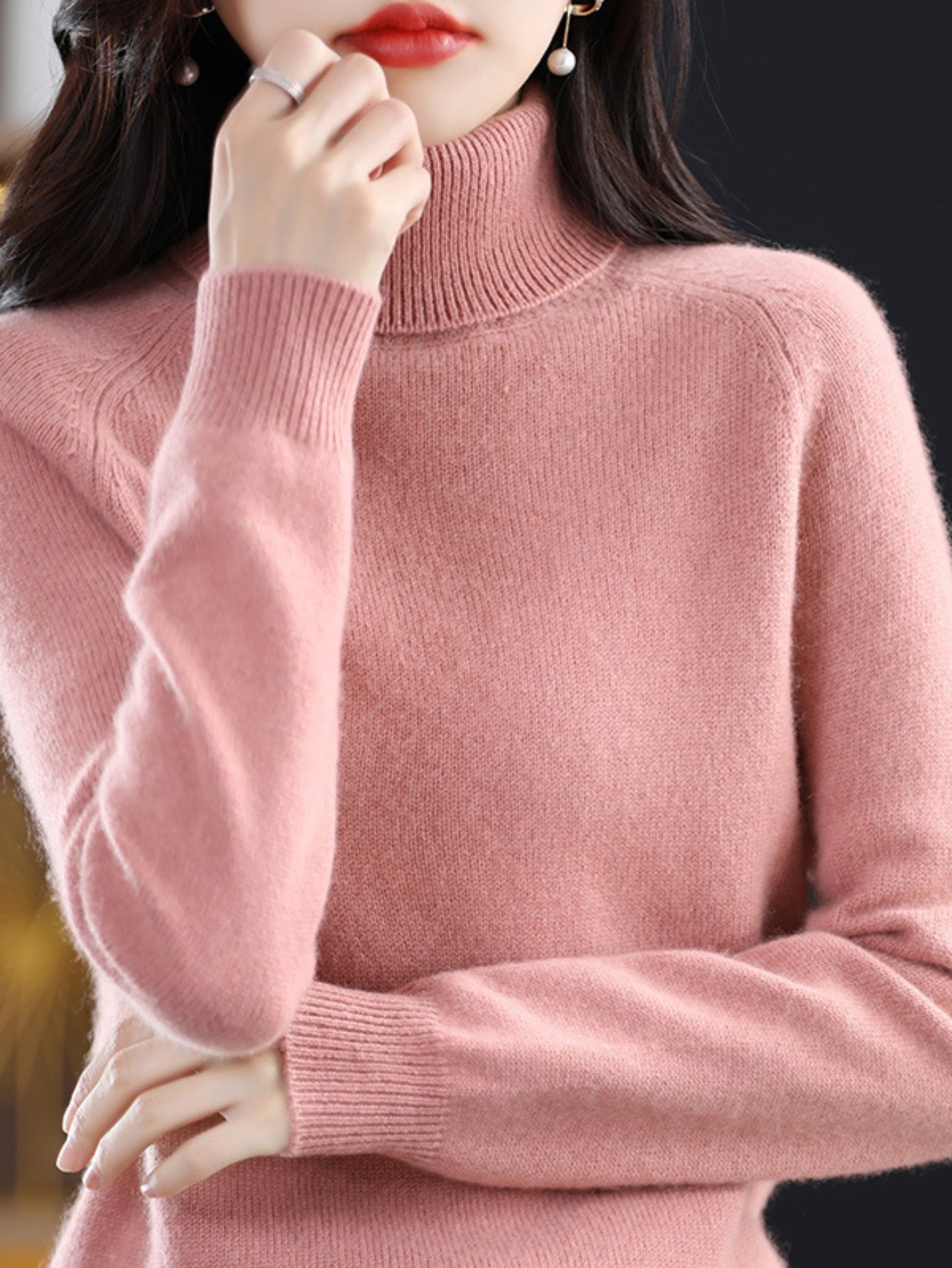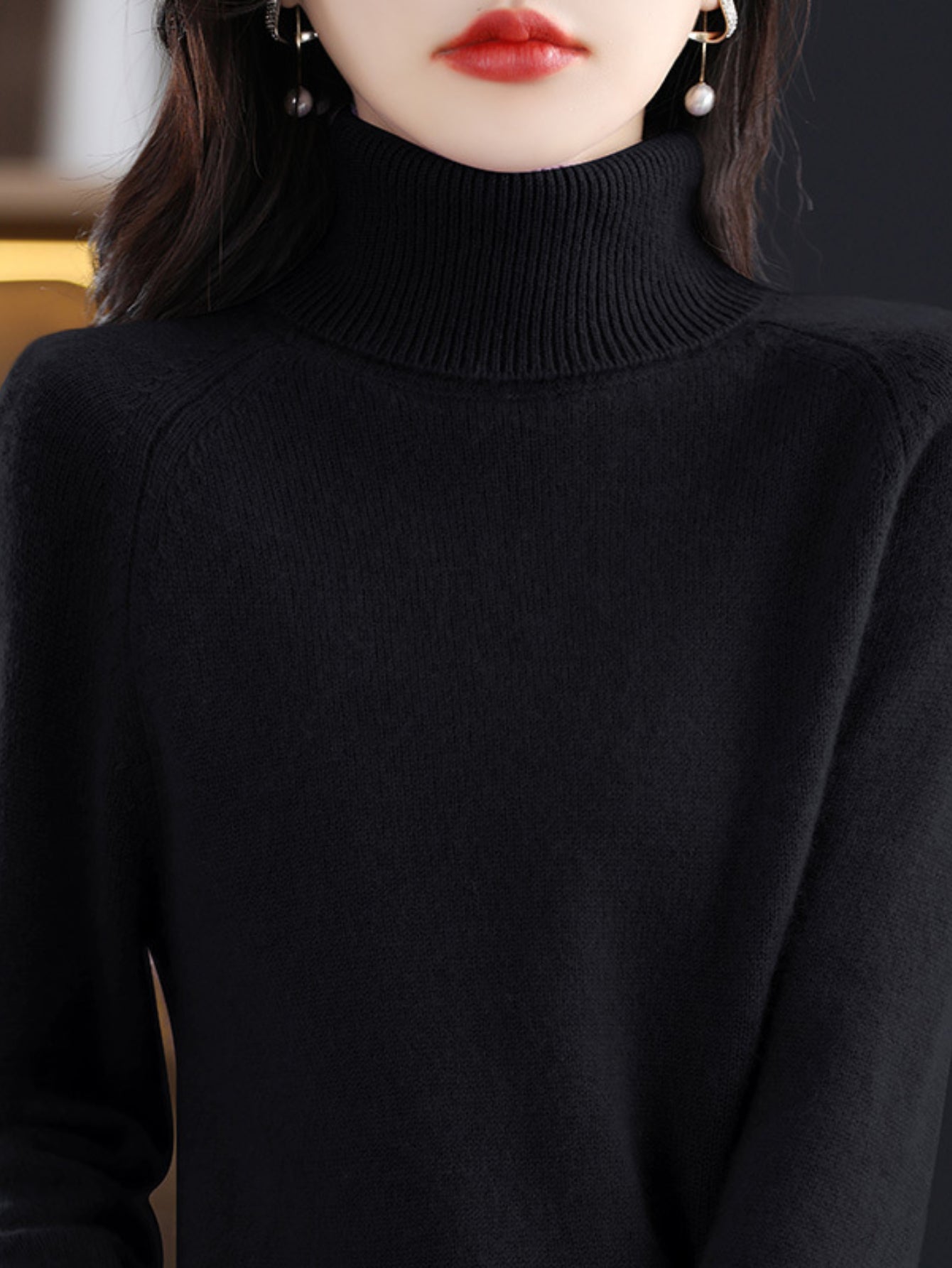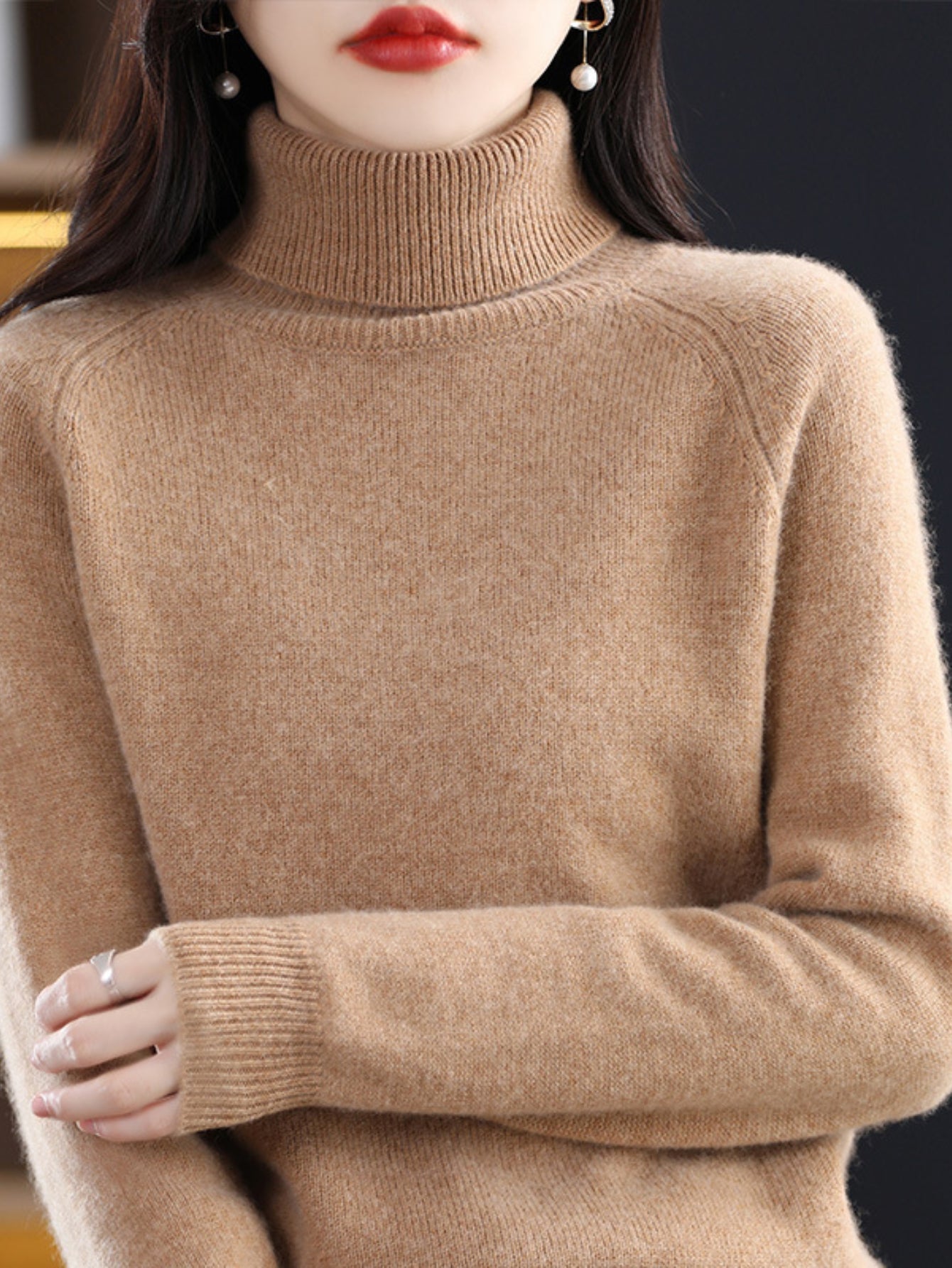 Sale Cozy Solid Turtle Neck Sweater - Elegant Long Raglan Sleeve, Soft, Warm, and Comfortable