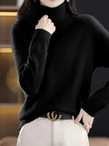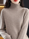 Cozy Solid Turtle Neck Sweater - Elegant Long Raglan Sleeve, Soft, Warm, and Comfortable