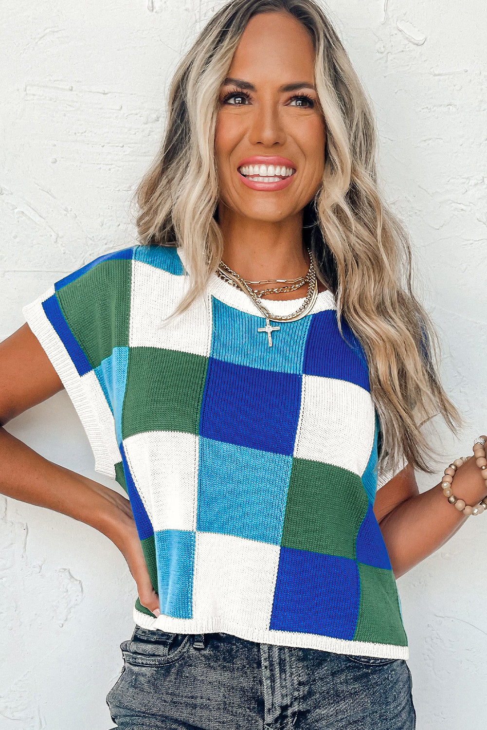 - This lightweight knit top features a boxy fit, fashionable and relaxedThe checkered print is perfect for going from edgy to dressyThe cap sleeve style adds a romantic touchStyle it up by pairing with jeans and be the talk of the town