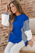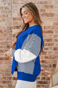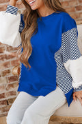 Dark Blue Striped Patchwork Sleeve Colorblock Sweatshirt
