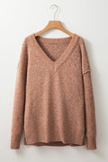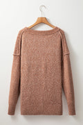 Sale Dark Brown Loose Eyelet V Neck Drop Shoulder Sweater