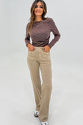 Dark Brown Polka Dot Boat Neck Knit Long Sleeve T Shirt