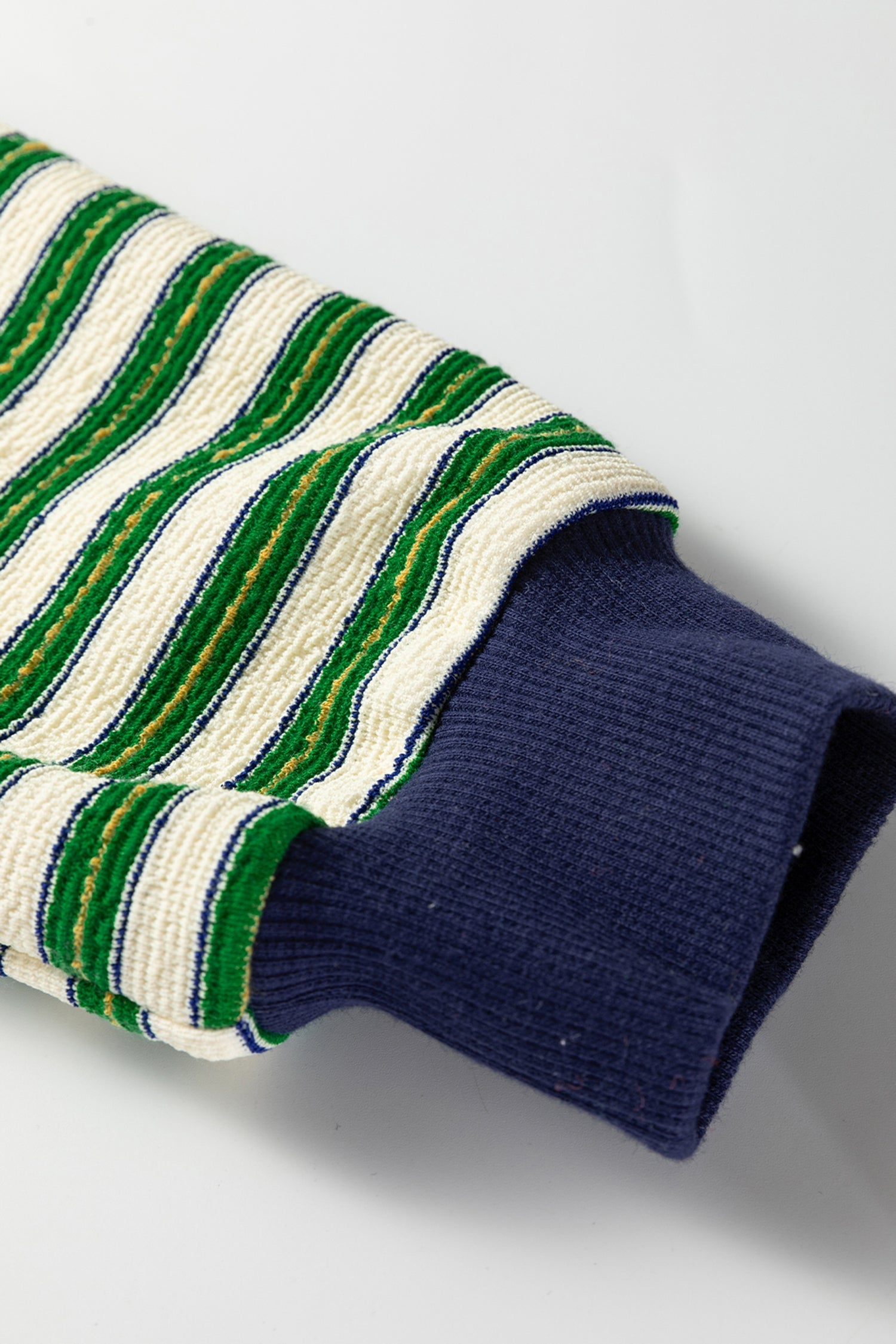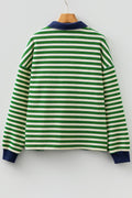 Dark Green Striped Print Contrast Collar Zip V Neck Long Sleeve Top