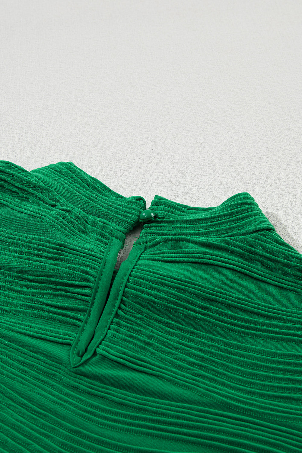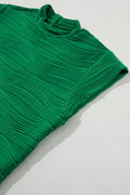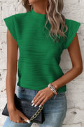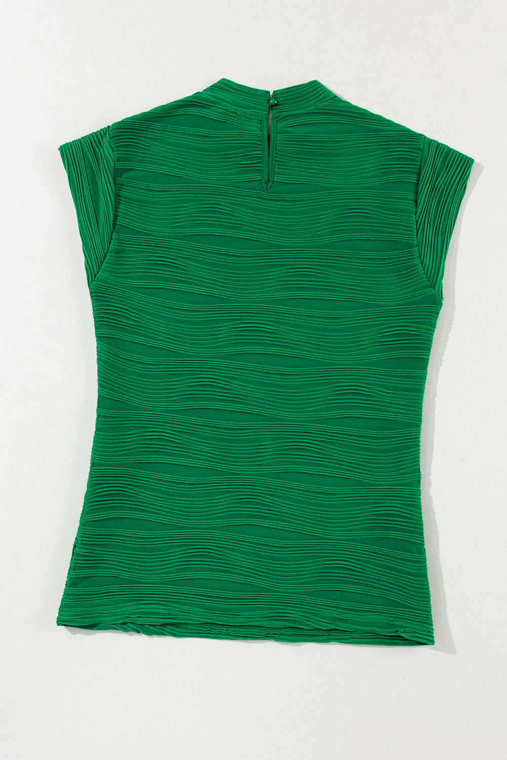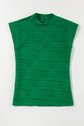 Dark Green Wavy Textured Mock Neck Cap Sleeve Top