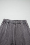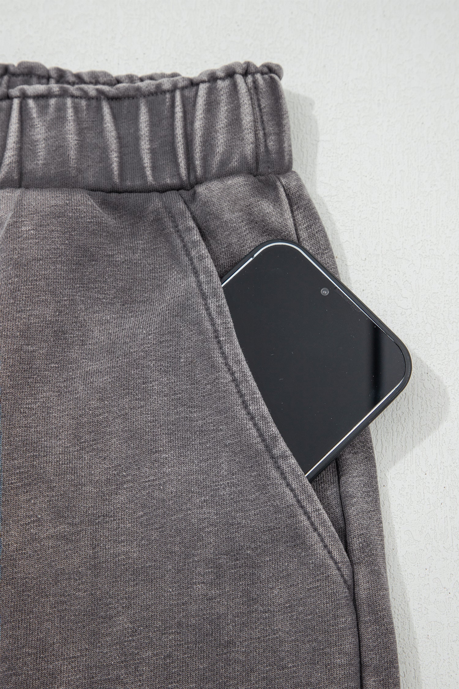 Gray Tied Elastic High Waist Pleated Detail Solid Sweatpants