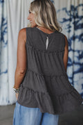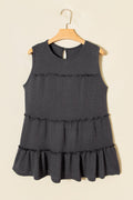 Dark Grey Tiered Frill Trim A-line Tank Top
