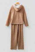 Dark Khaki Leopard Drawstring Pullover Hoodie and High Waist Pants Corduroy Suit