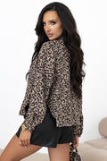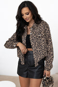 Dark Khaki Leopard Print Corduroy Irregular Hem Buttoned Jacket