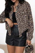 Sale Beige Leopard Print Flap Pockets Buttoned Corduroy Shacket