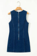 Sale Dirty blue Sleeveless Zipped Bodycon Denim Short Dress
