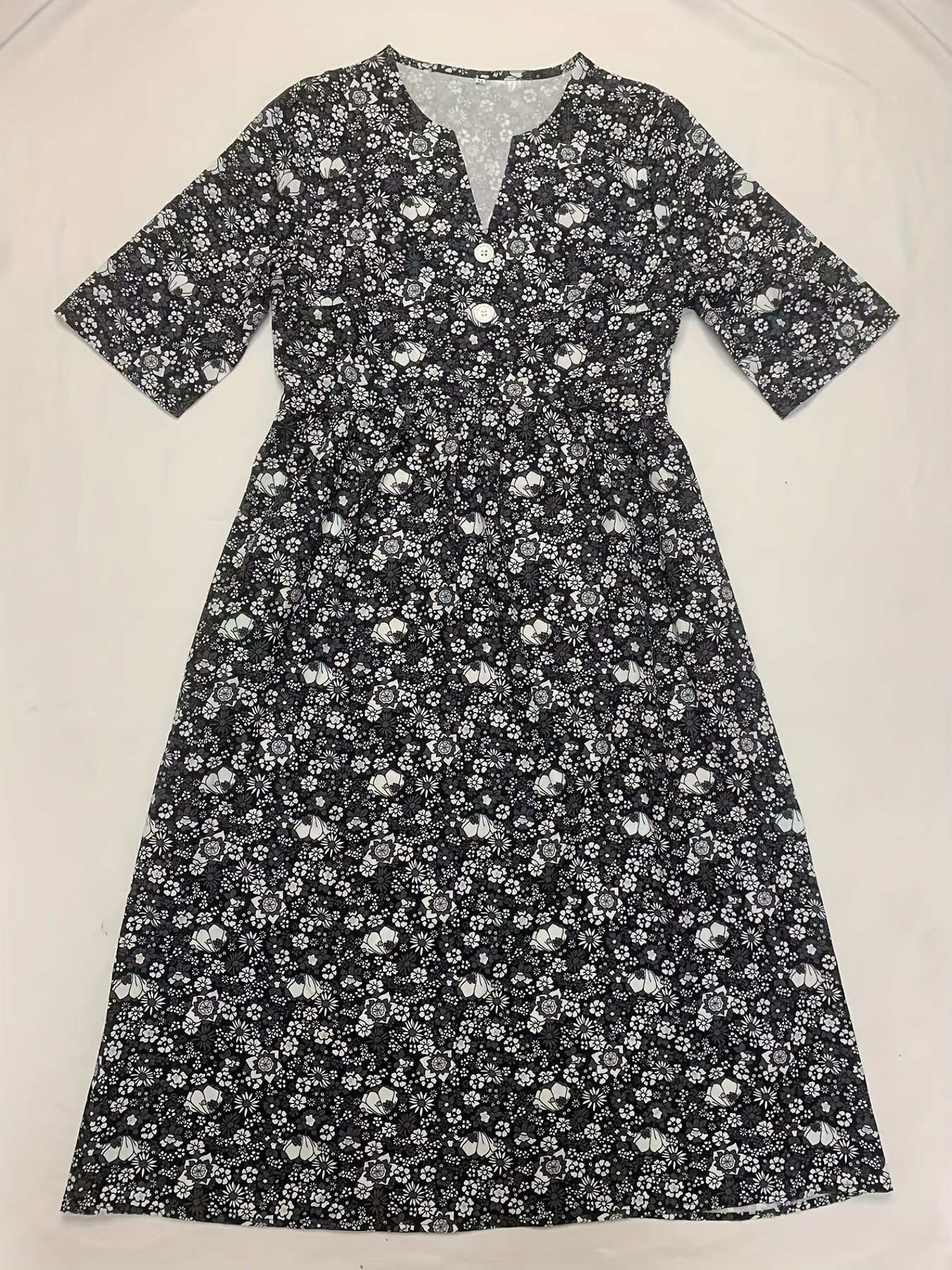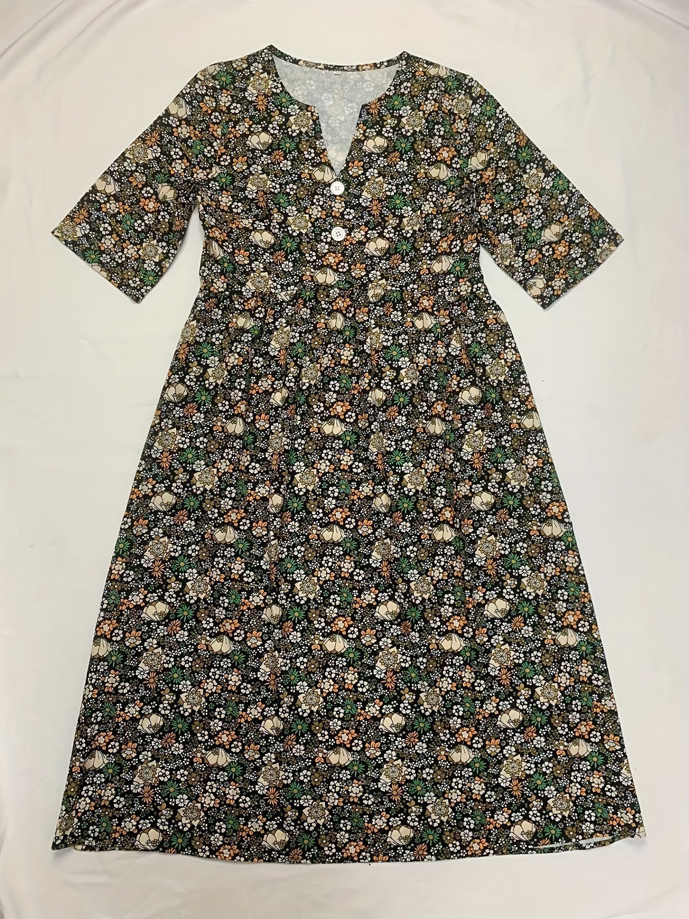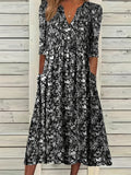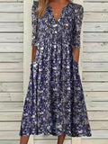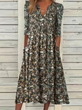 Sale V Neck Short Sleeves Print Casual Midi Dress