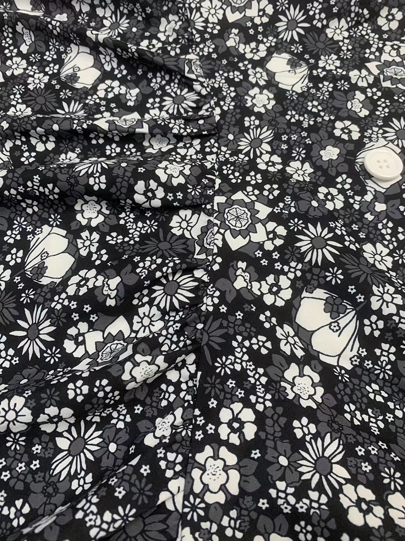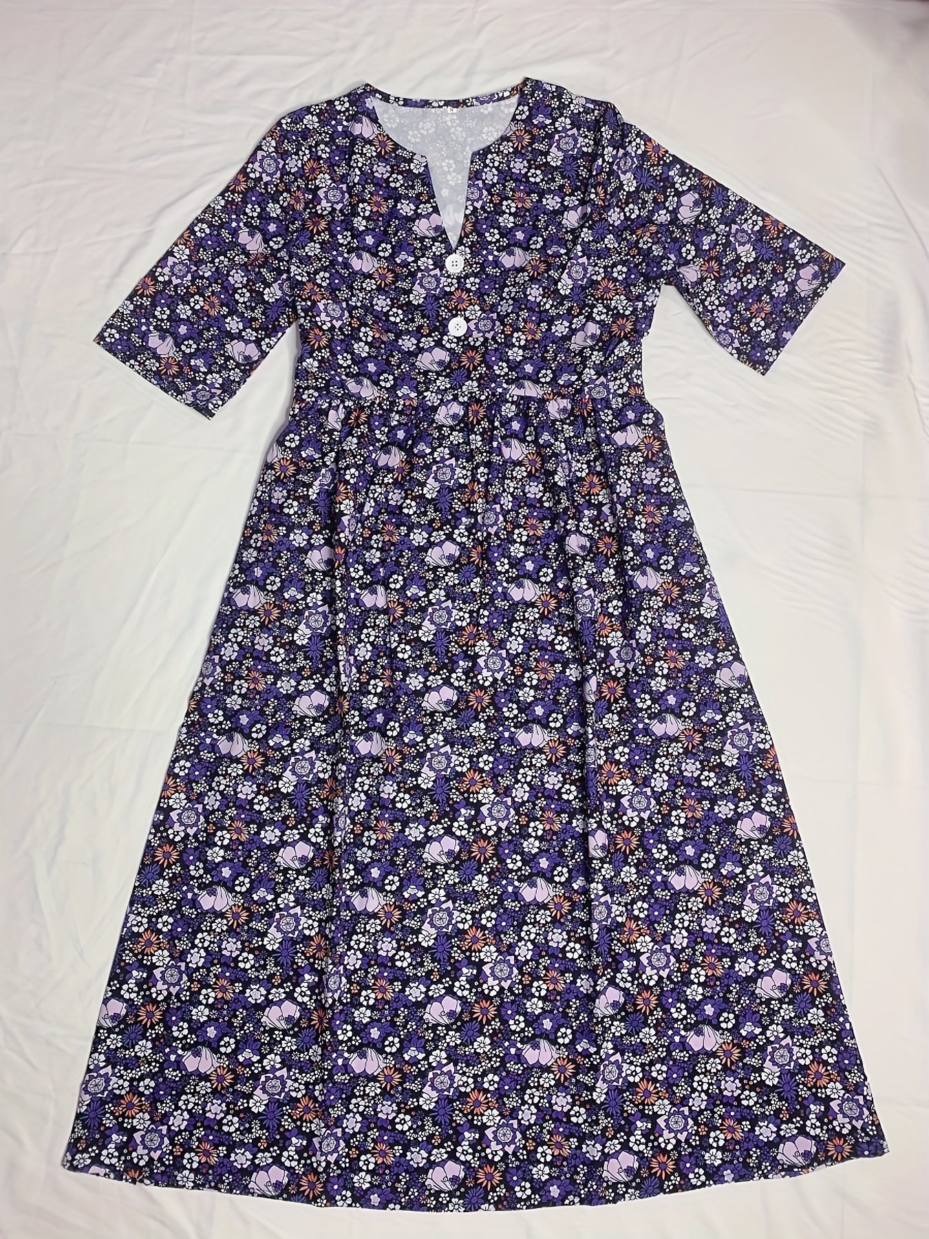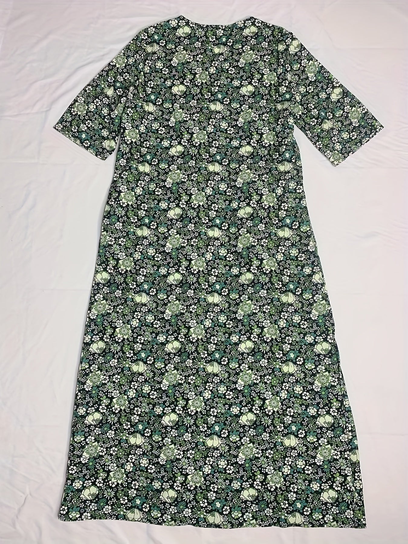 Sale Elegant Floral Print Knee-Length Short Sleeve Round Neck A-Line Dress