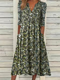 Sale 3/4 Sleeve V-neck Graphic Lace Midi Dress