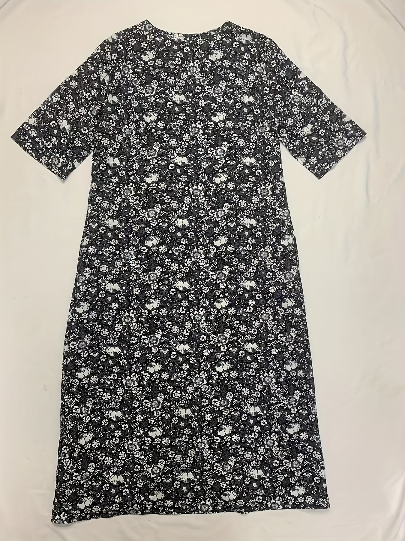 Sale Graphic Print Dress with Long Sleeves and Pockets - Casual and Comfortable