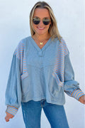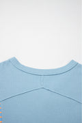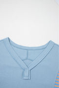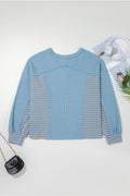 Dusk Blue Exposed Seam Waffle Striped Patchwork Baggy Pullover