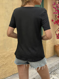Elegant Black Square Neck Short Sleeve Solid Regular Fit Basic T-Shirt