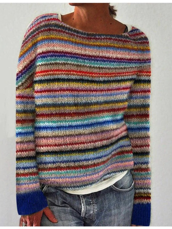 Elegant Color-Block Round Neck Long Sleeve Pullover Sweater