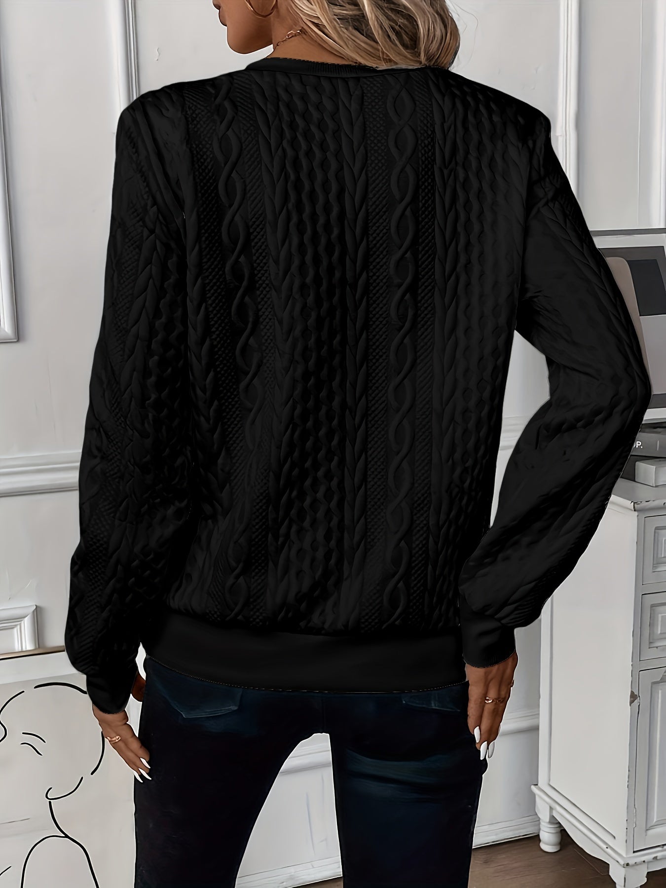 Elegant Crew Neck Zipper Sweatshirt, Solid Color Long Sleeve Top