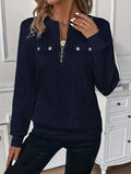Sale Elegant Crew Neck Zipper Sweatshirt, Solid Color Long Sleeve Top