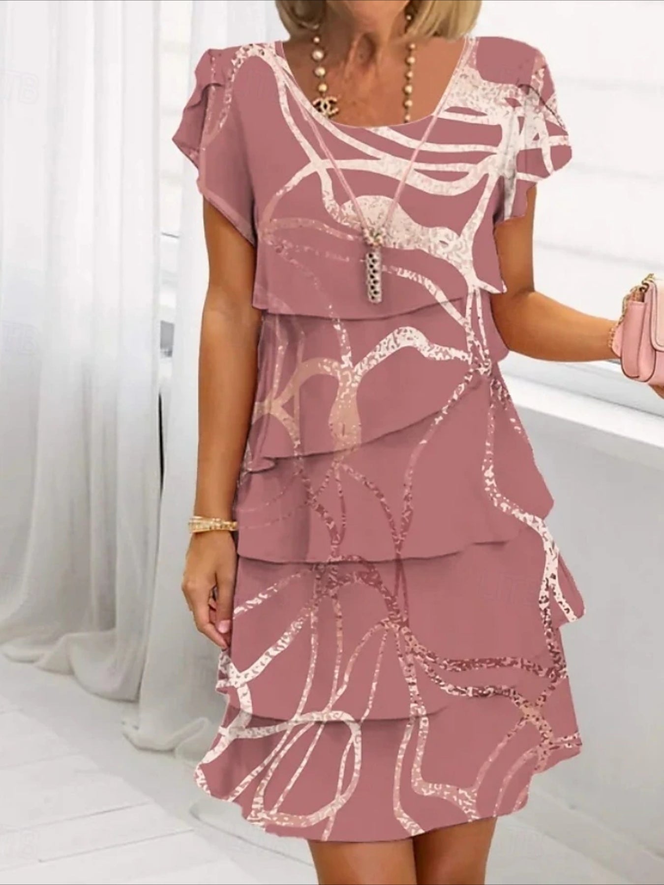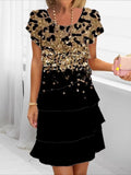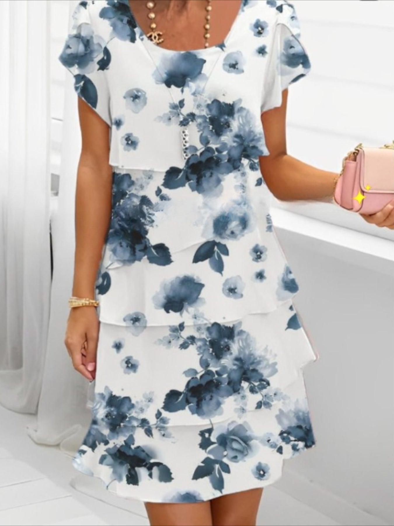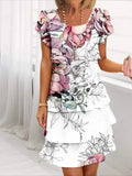 Elegant Daily Regular Fit Floral Geometric Short Sleeve Crew Neck Midi Dress