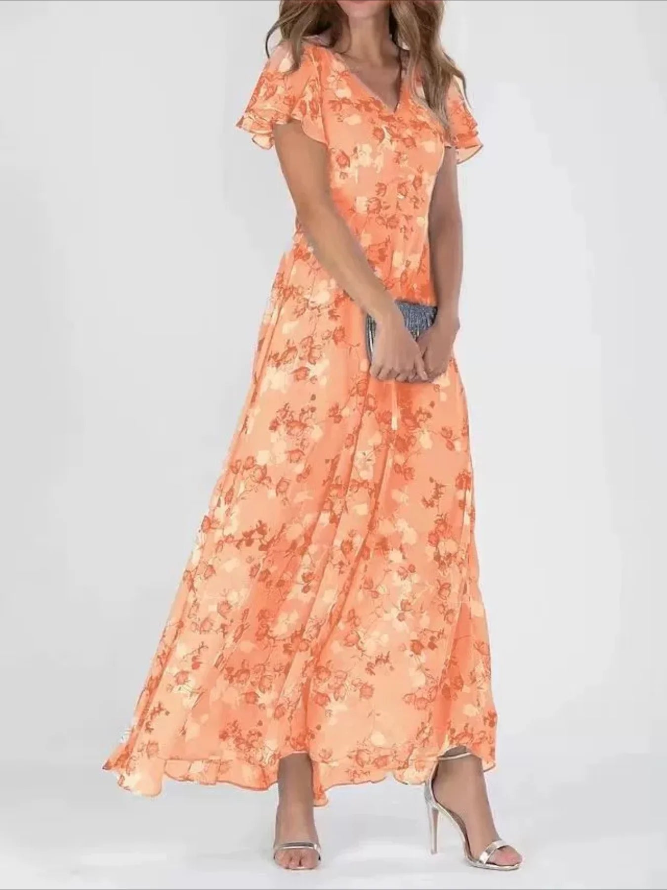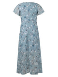 Sale Elegant Floral Print V-Neck Maxi Dress