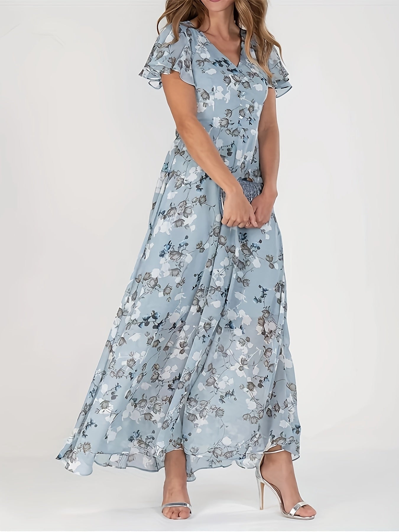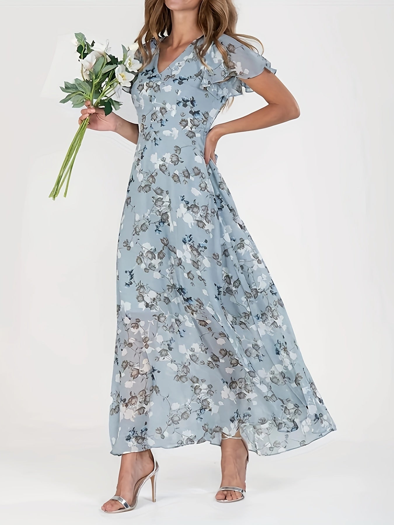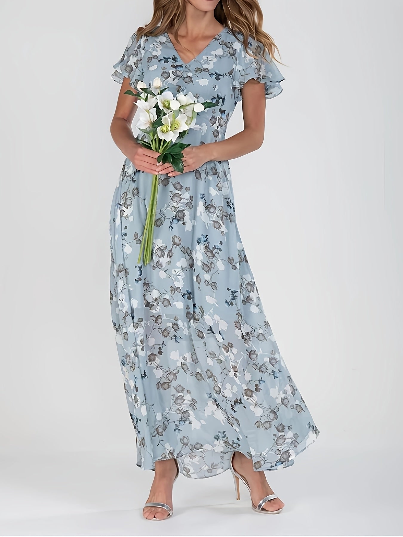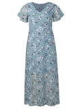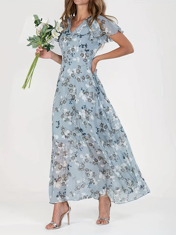 Elegant Floral Print V-Neck Maxi Dress