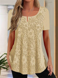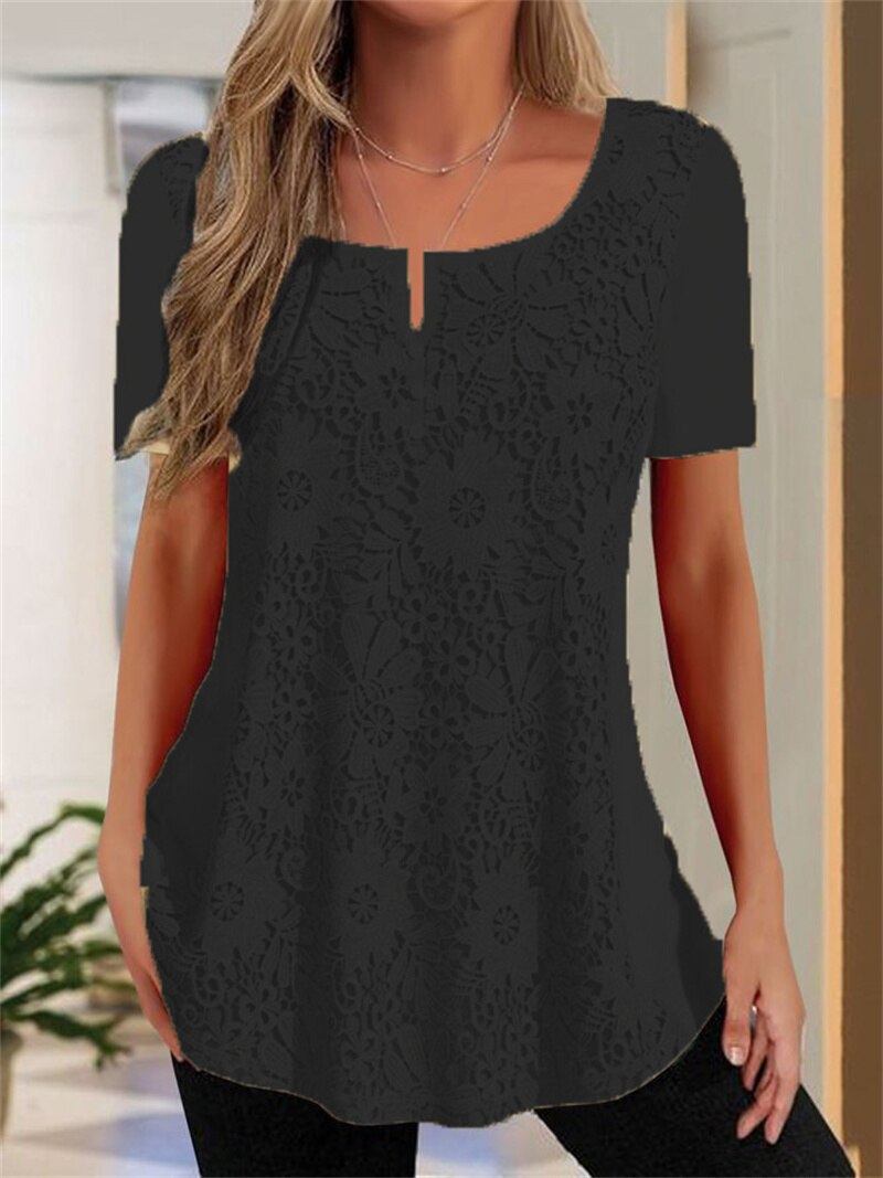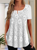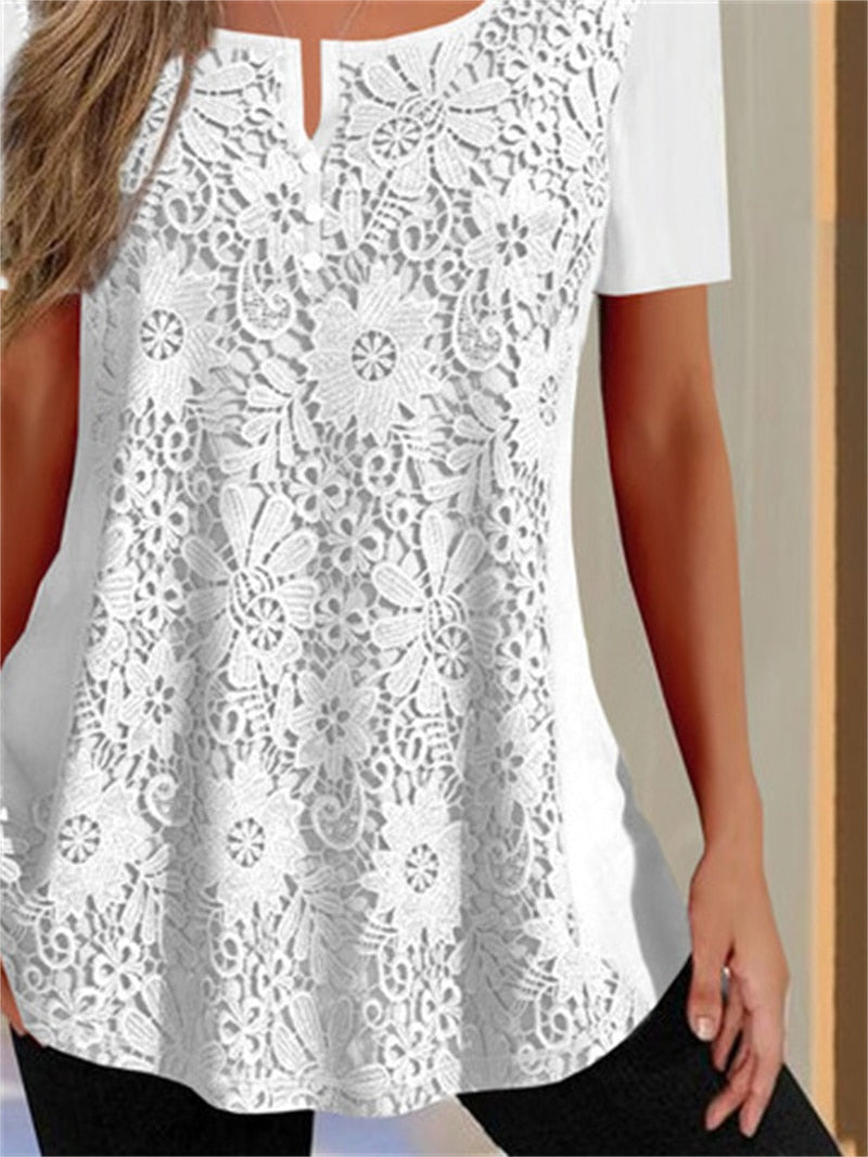Sale Casual Contrast Lace Round Neck Long Sleeve T-Shirt