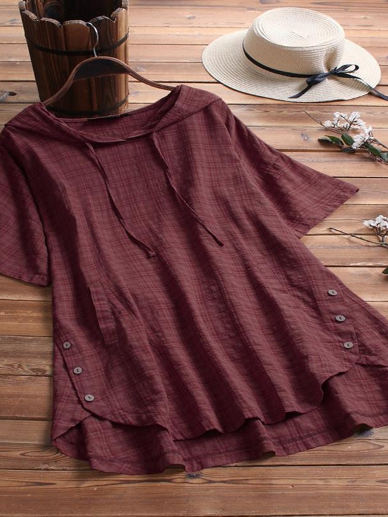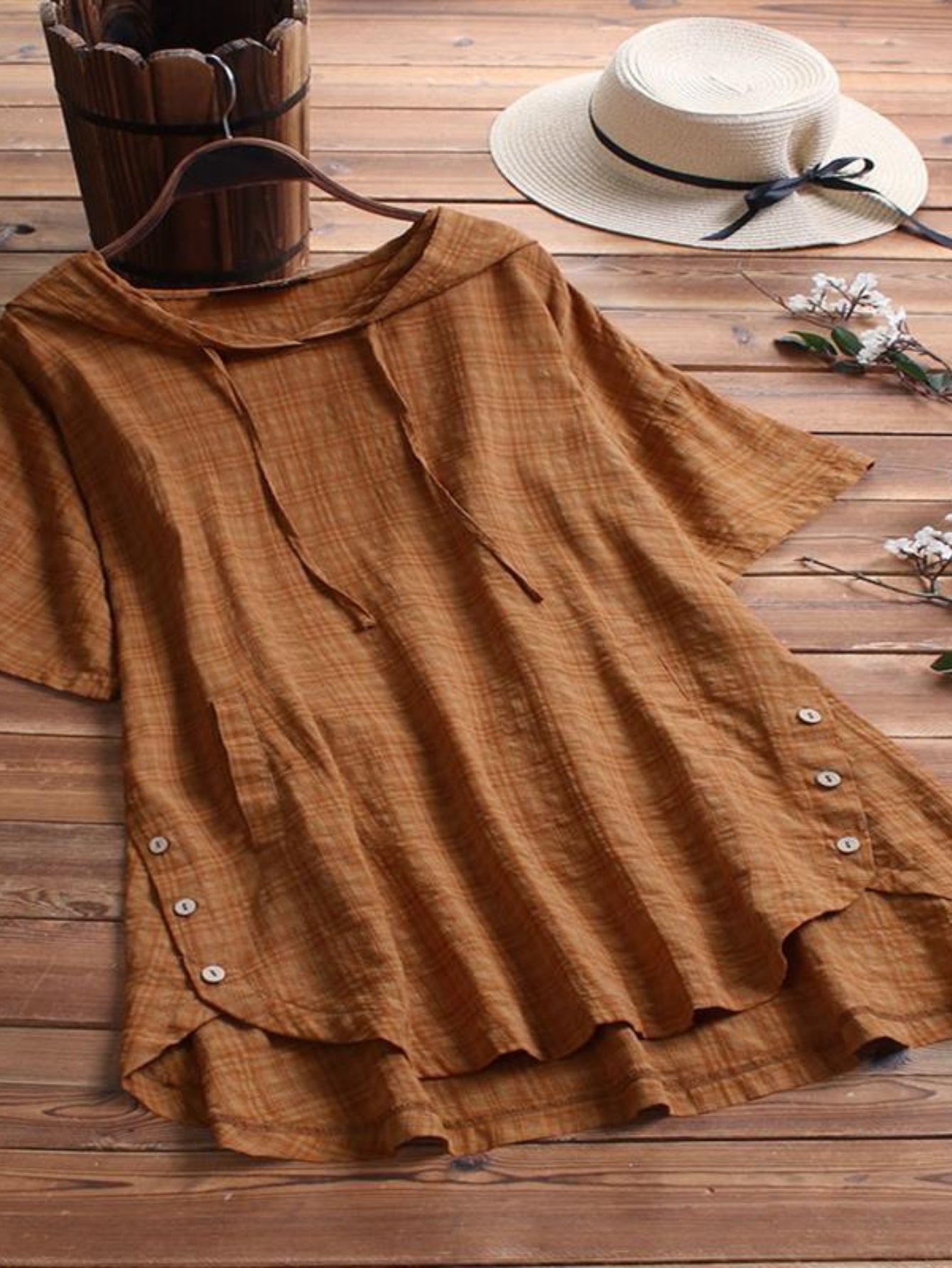 Elegant Hooded Plaid Blouse for Women - Long Sleeve Shirt with Drawstring Detail