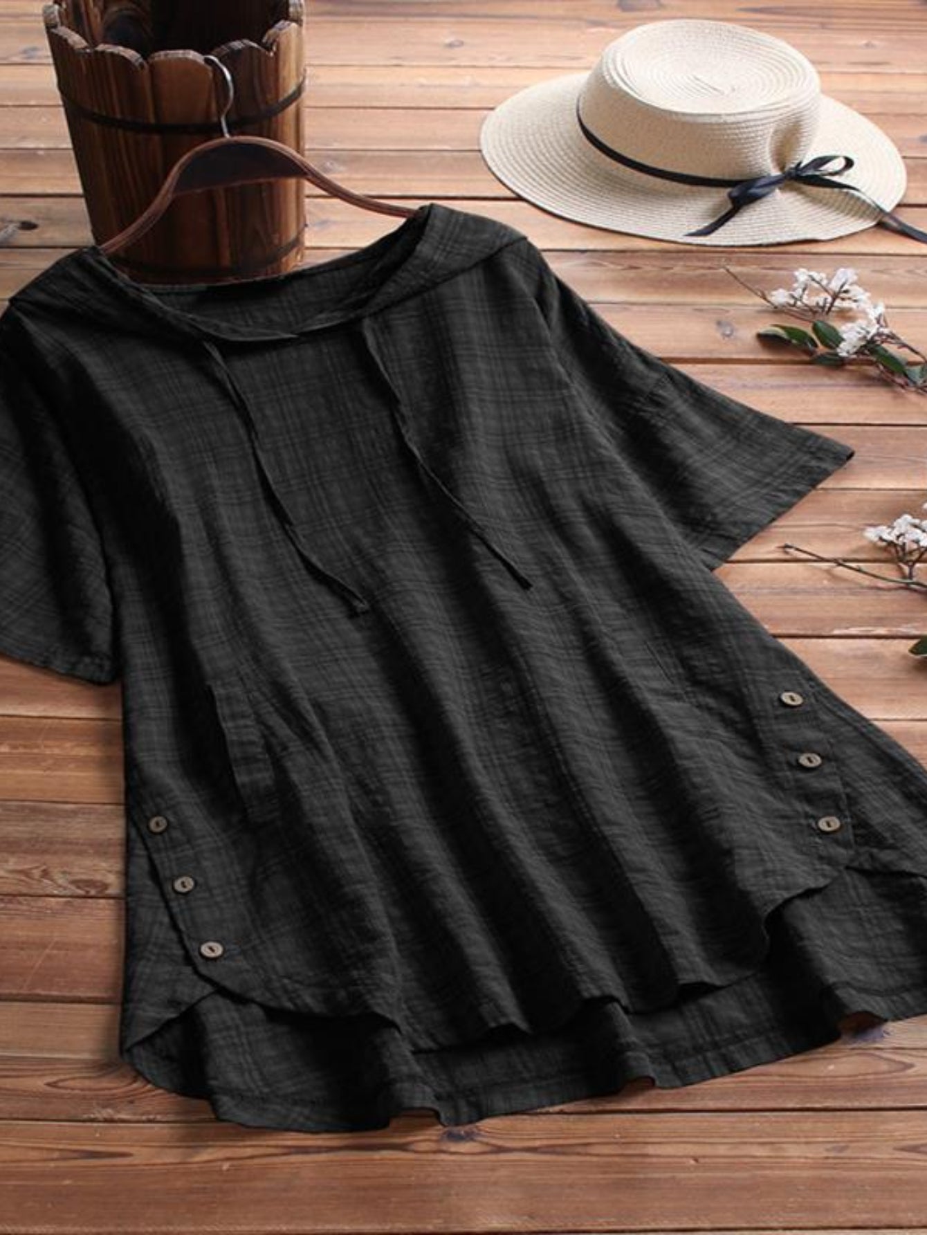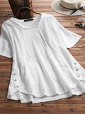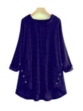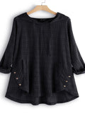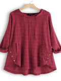 Sale Striped Botton Crew Neck T-Shirt, Elegant Long Sleeve T-Shirt